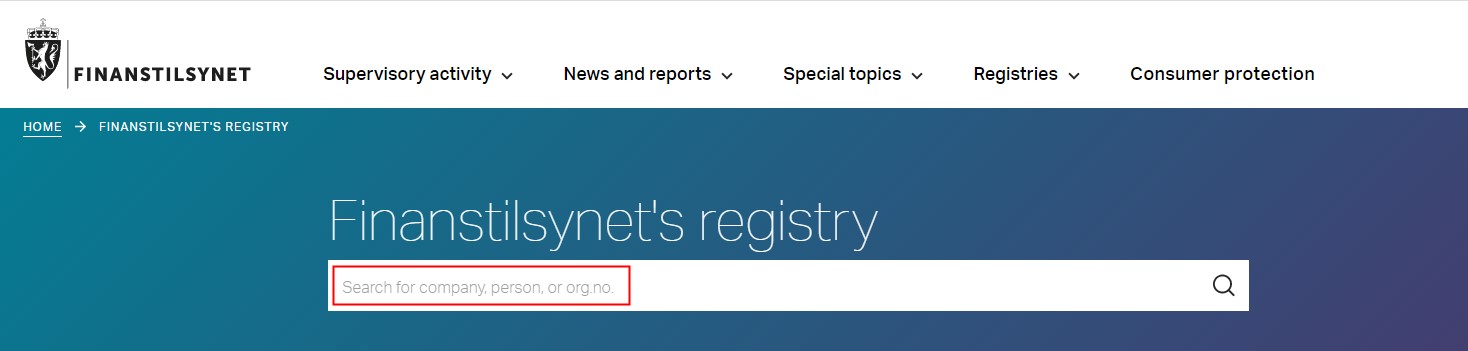 الموقع الإلكتروني: http://www.finanstilsynet.no/en