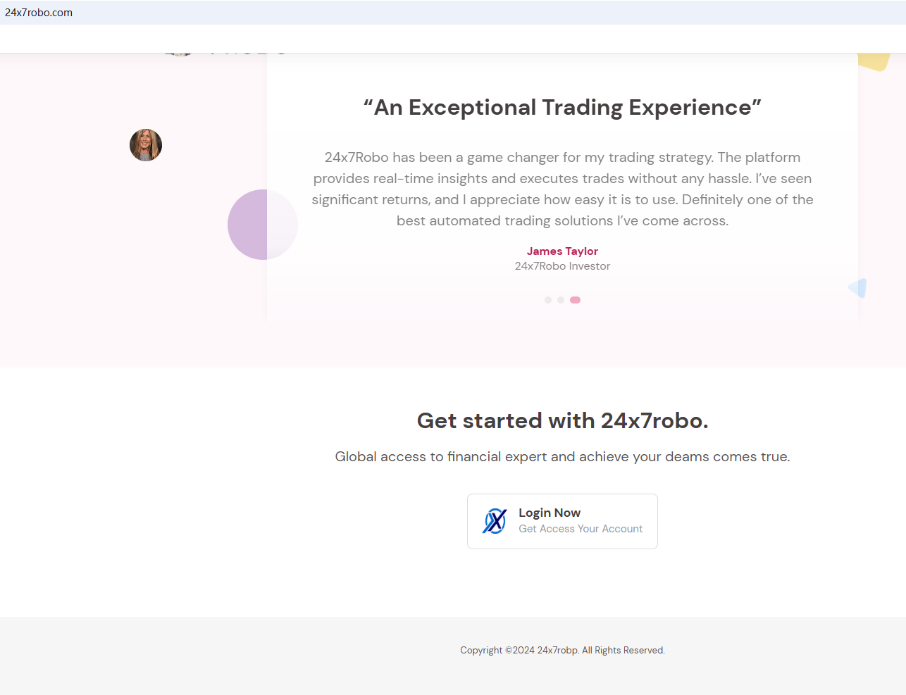 In essence, 24x7robp is not regulated by any governing body. Entrusting this broker with investors' funds is highly risky, as there are no legal protections in place to safeguard the funds. 24x7robp is unequivocally a scam.