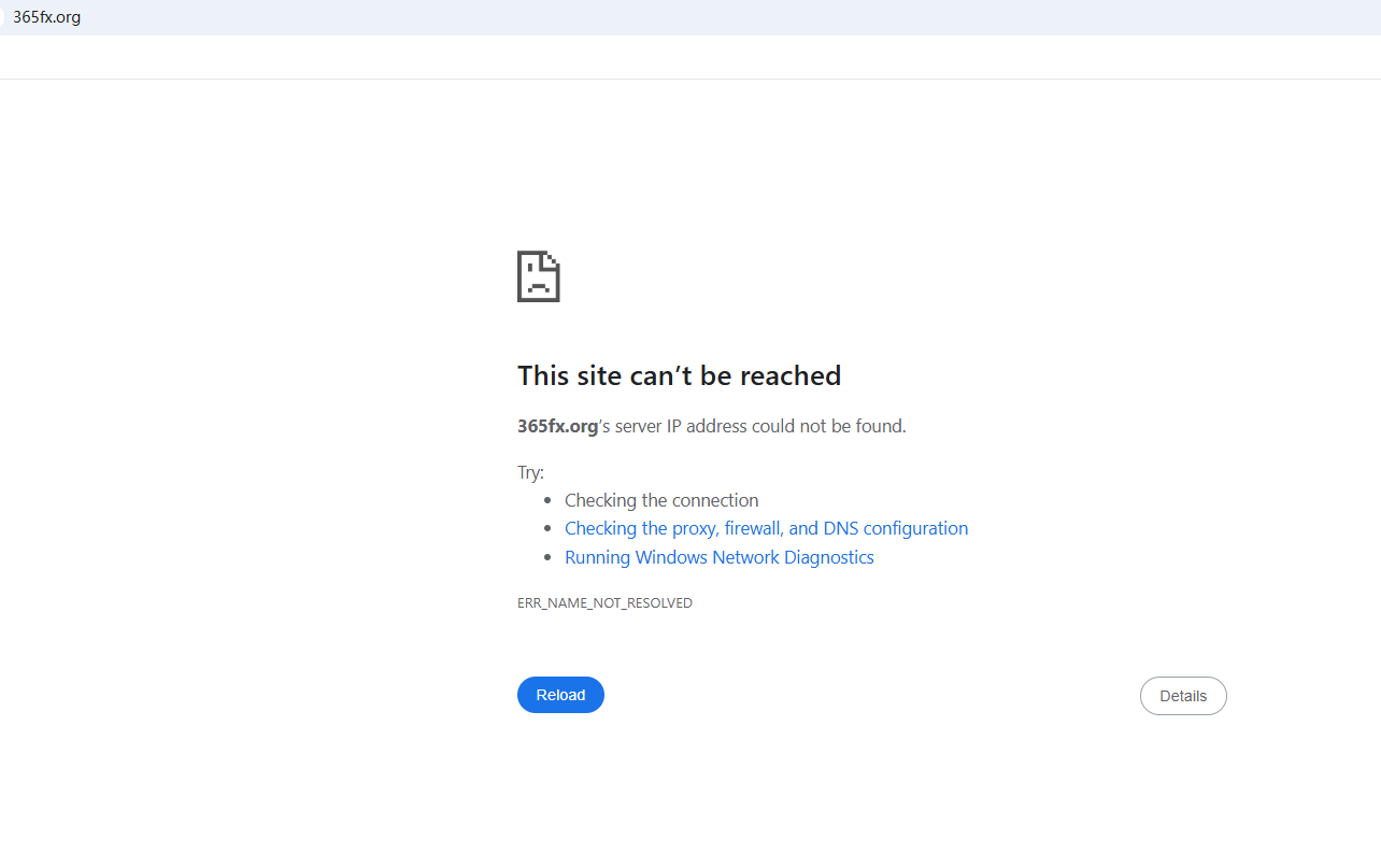 BrokersView found that the domain "https://365fx.org/" is currently inaccessible. This is widely regarded as a significant red flag, as the suspension of a broker's website often points to underlying regulatory or operational issues.