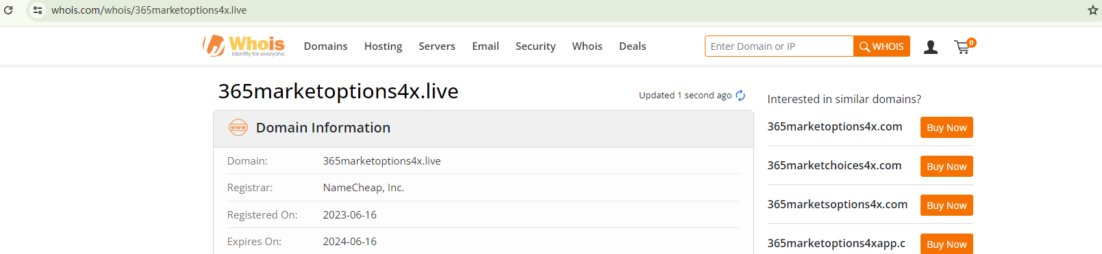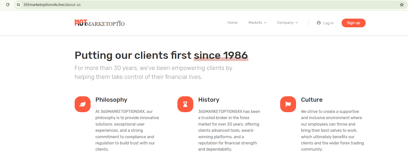365MARKETOPTIONS purports to be a brand established in 1986, yet its domain name, 365marketoptions4x.live, was only registered in June 2023. This recent domain registration contradicts its claimed history, casting doubt on the broker's credibility.
