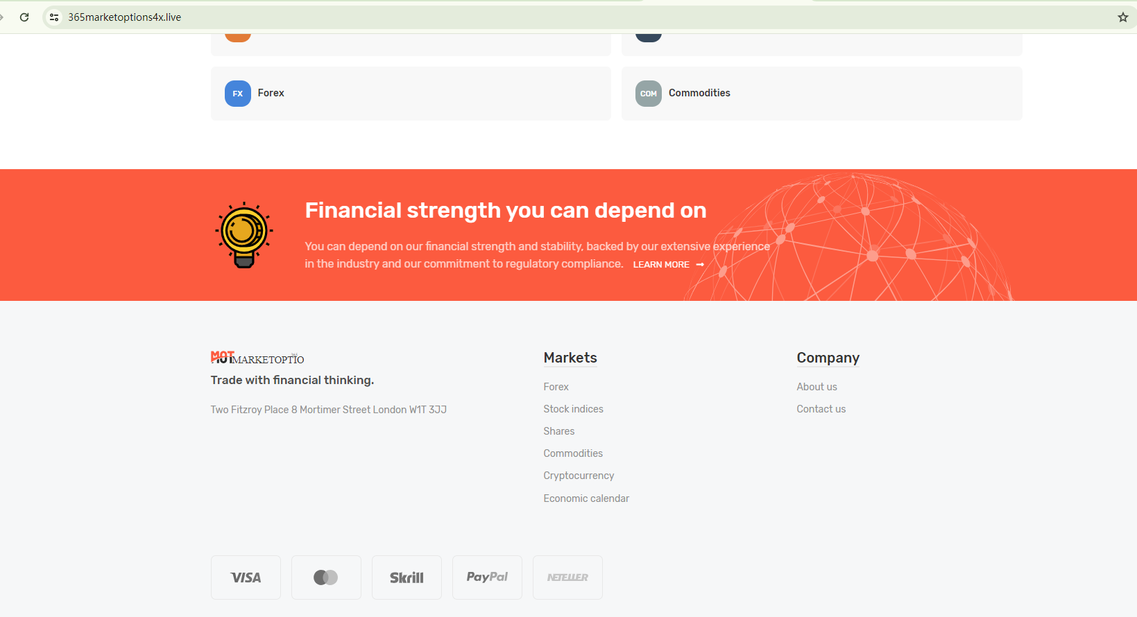 Exaggerated language is used to bolster its reputation, but there's no regulatory information to substantiate its legitimacy. The Financial Conduct Authority (FCA) has flagged 365MARKETOPTIONS as an unauthorized firm in the UK, a warning that signals potential fraudulent activity.