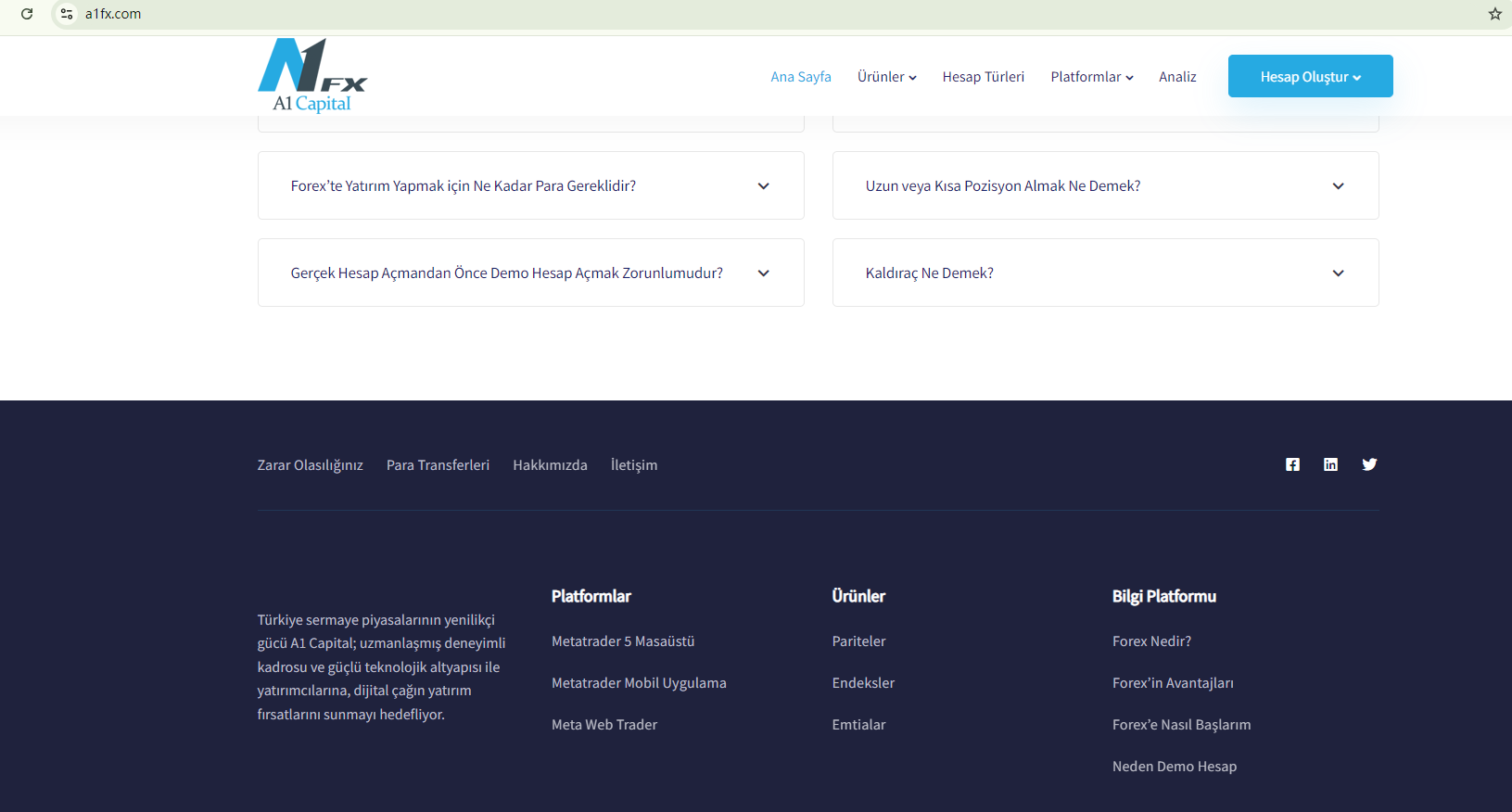 A1FX claims to be a forex broker in the Turkish capital market. In the footer of its website it refers to itself as A1 Capital. However, our verification with the Capital Markets Board of Türkiye (CMB) suggests that the website for A1 Capital is a1capital.com.tr, not a1fx.com. This inconsistency is a big warning sign. We haven't found any evidence to support potential relationship between A1FX and A1 Capital.