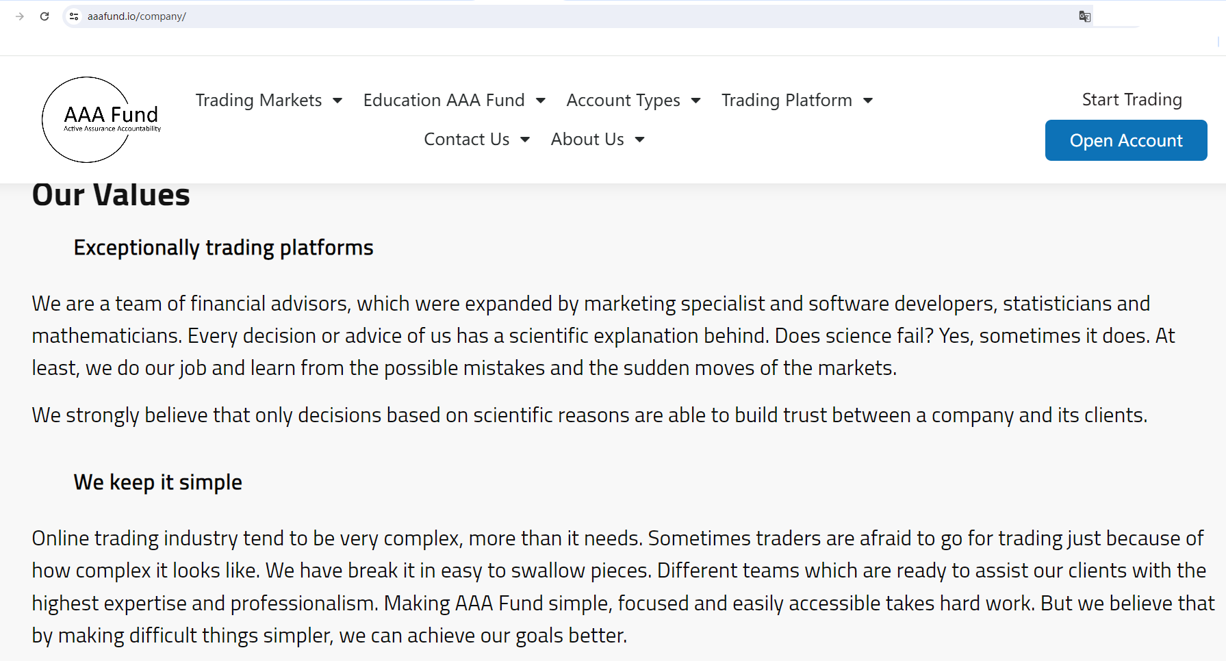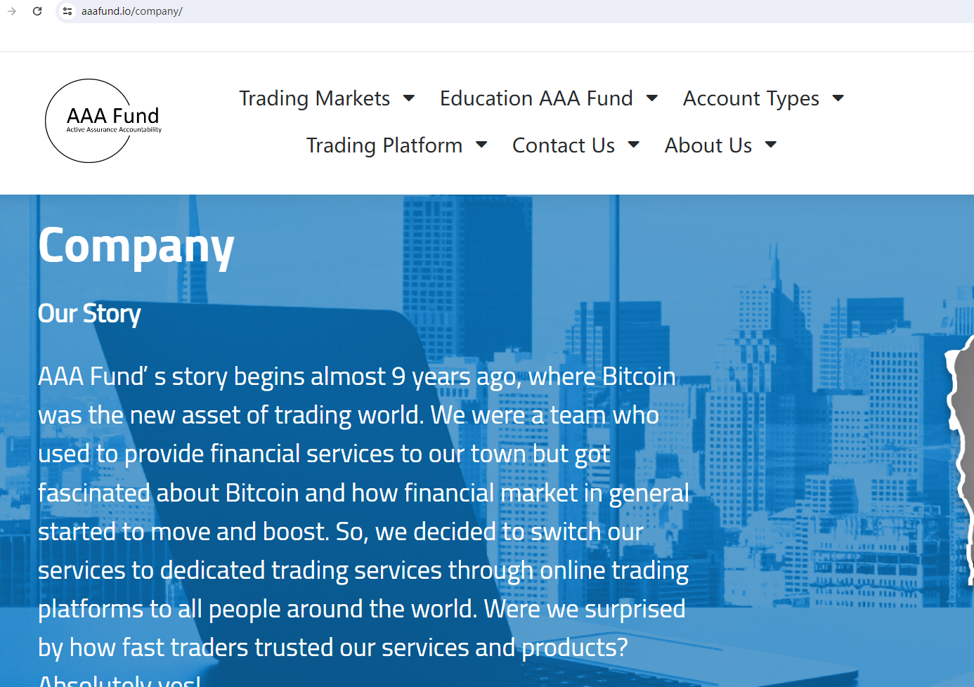 AAA Fund claims to be a reliable company without presenting any information about its regulation or contact. The lack of such important information may be a distinct signal of an unlicensed broker, as regulated companies always present their accreditations and licenses in a prominent position. It is a red flag.