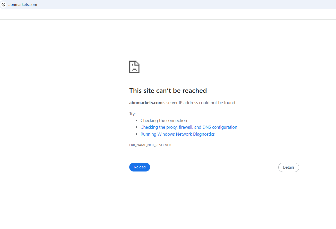 BrokersView found that the domain "https://abnmarkets.com/" is currently inaccessible. This is widely regarded as a significant red flag, as the suspension of a broker's website often points to underlying regulatory or operational issues.