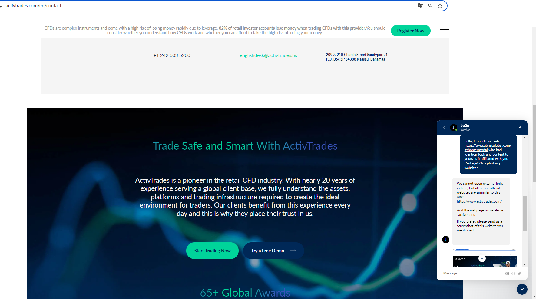 In addition, interestingly, we consulted Activtrades' customer service and found that Abnas Global has no potential connection with them.