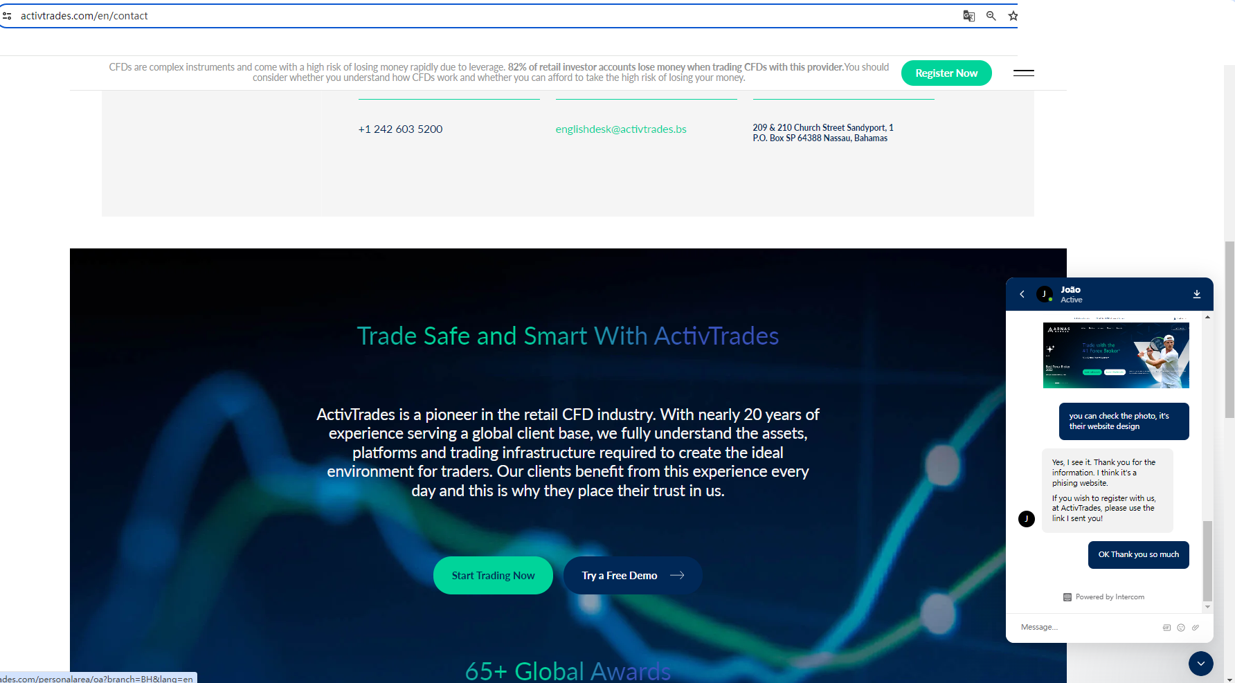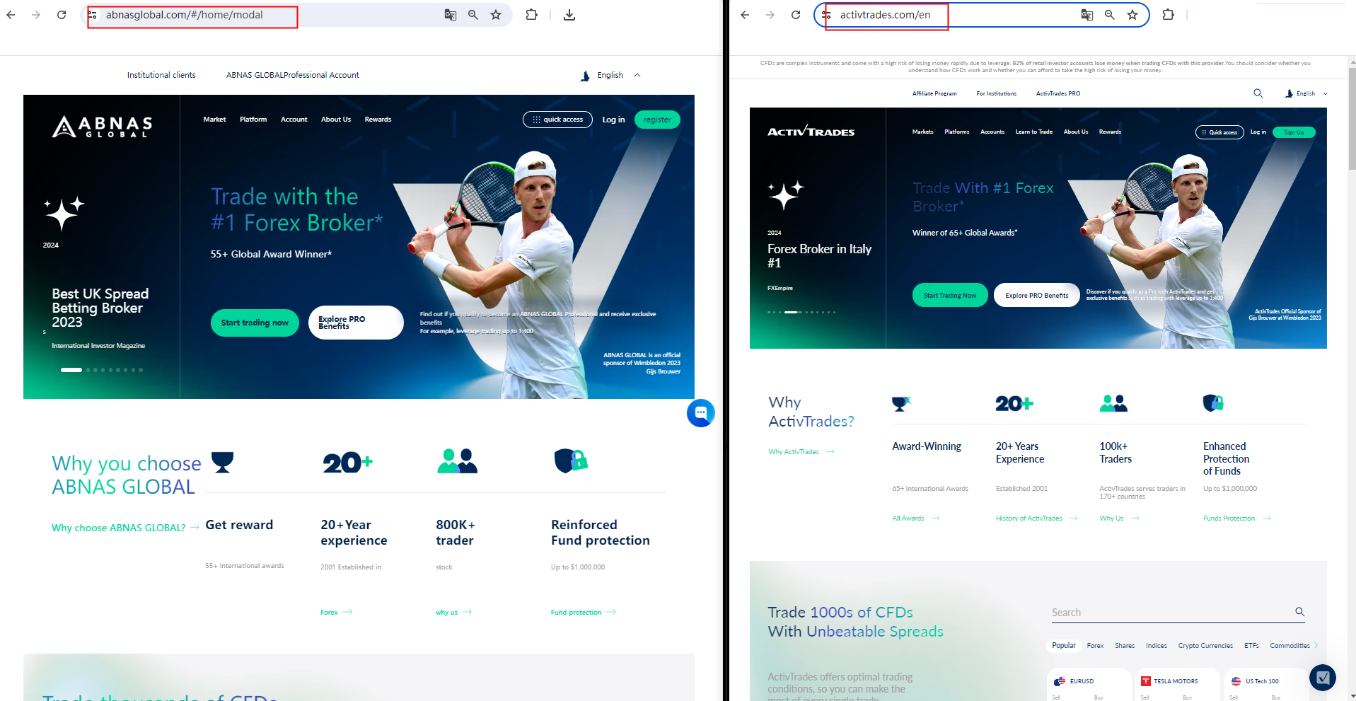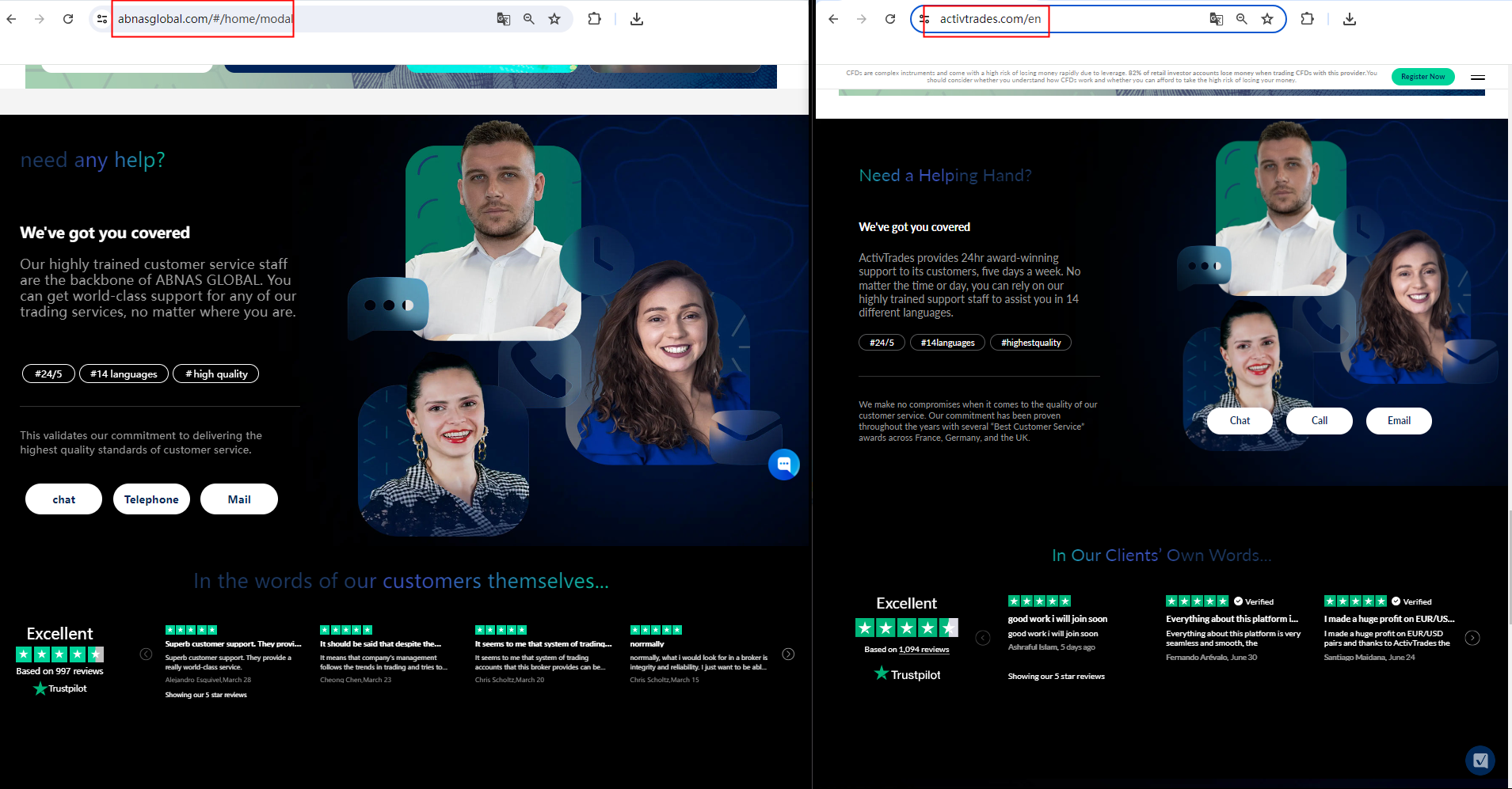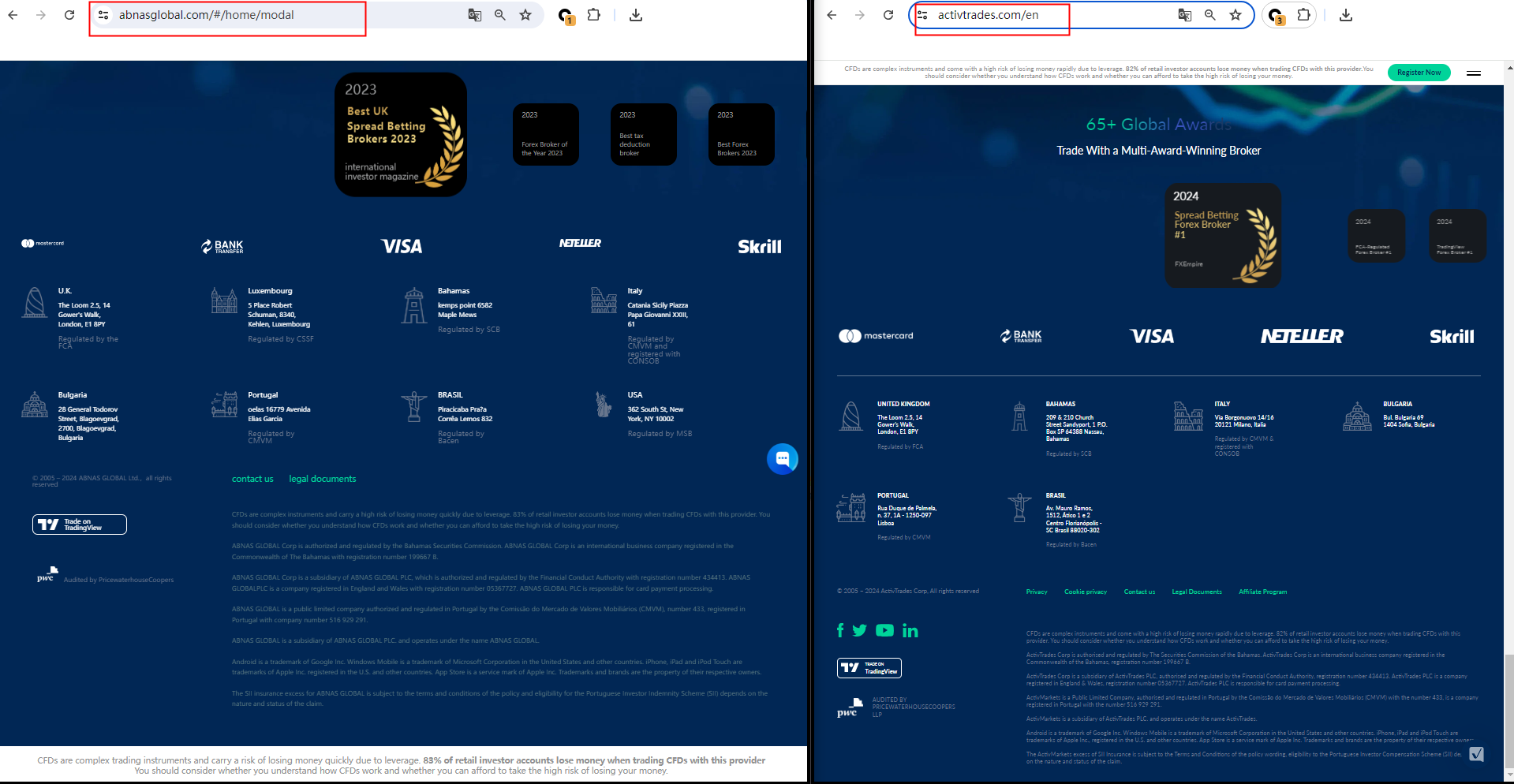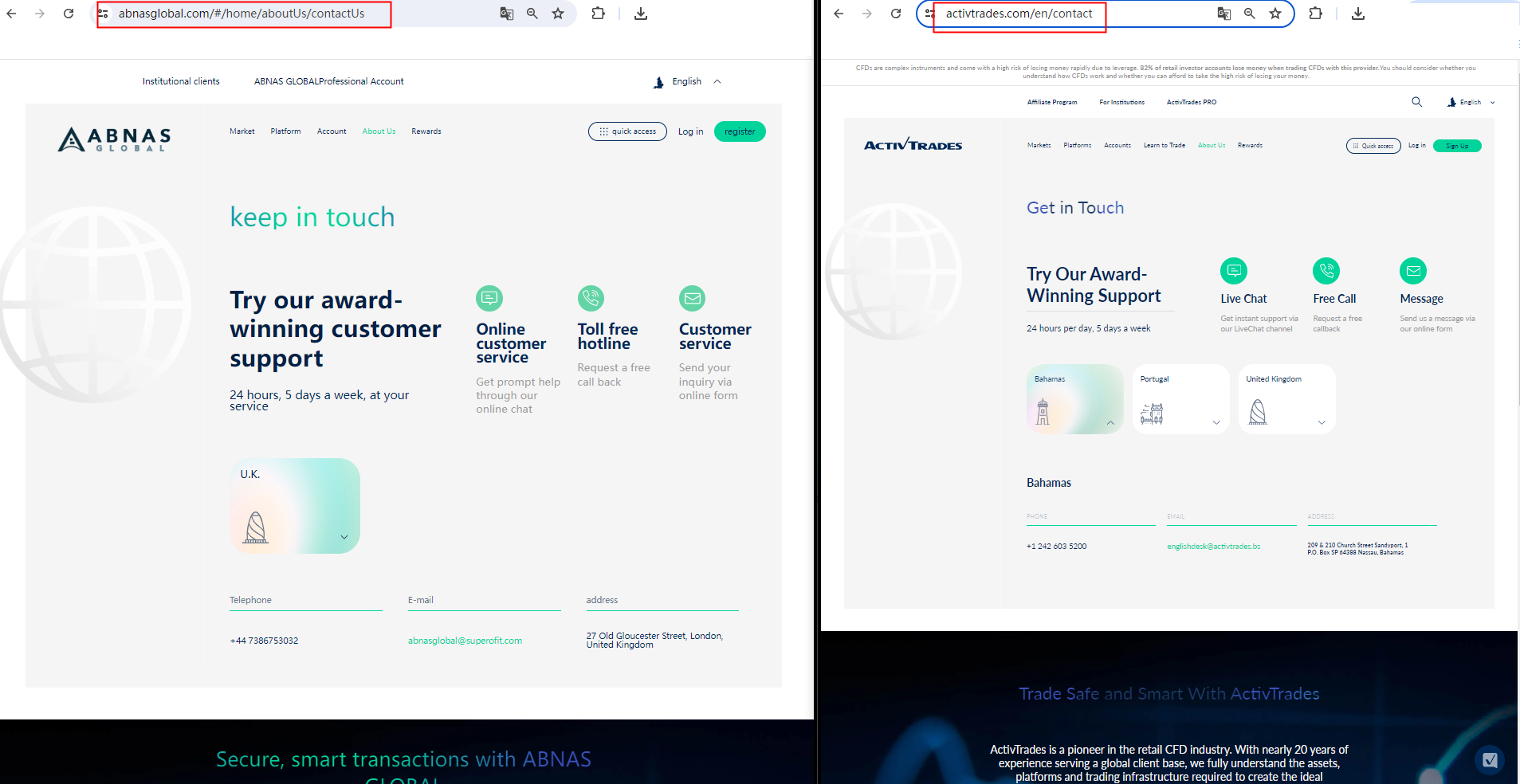 What is more noteworthy is that we compared the website pages of Abnas Global and Activtrades and found great similarities. Abnas Global imitated the content and graphic design of Activtrades, which means that the website abuses the information of legitimate brokers to appear real or create the feeling of any potential connection with the licensee. Either way, this is a clear indicator of a scam.