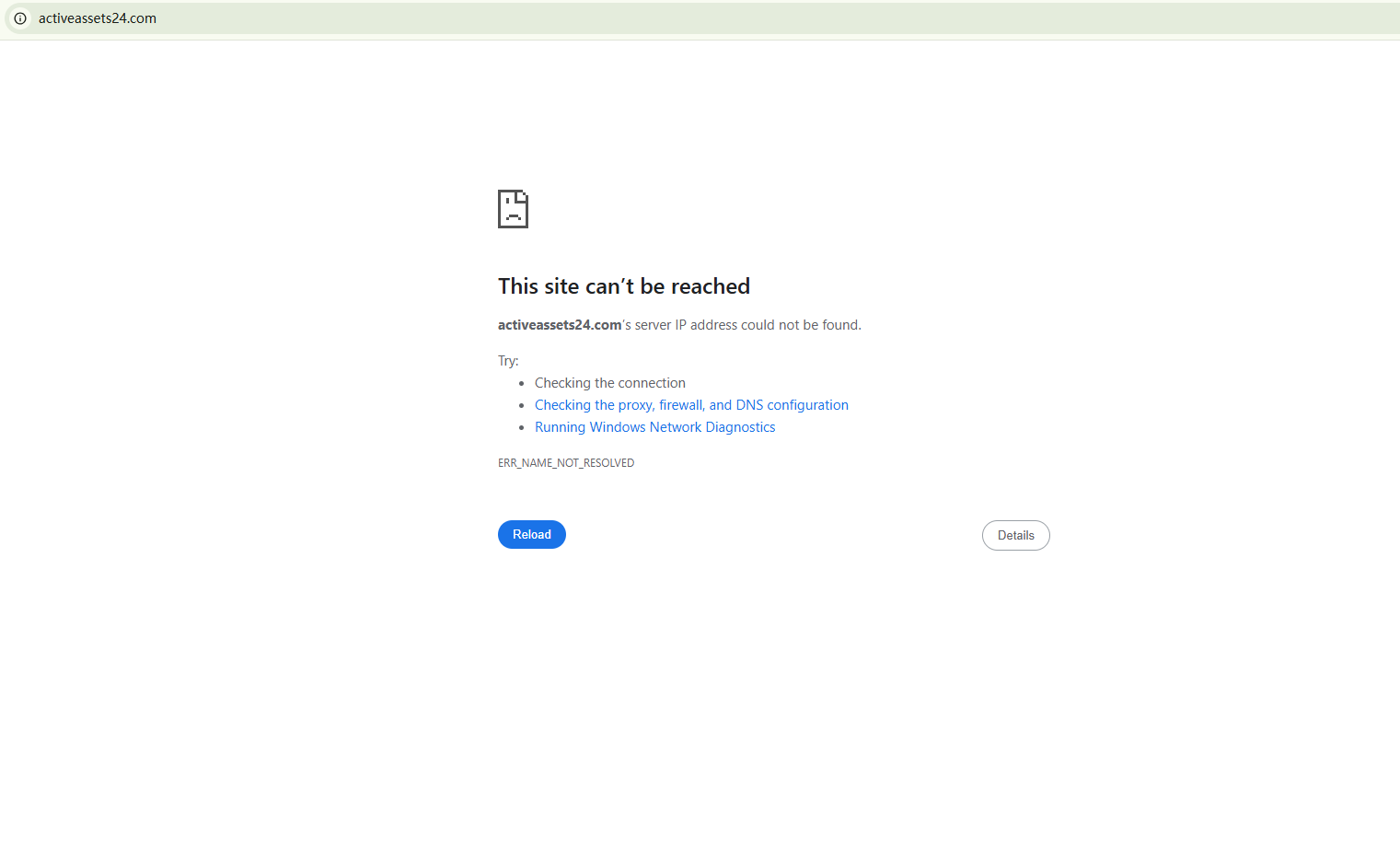 BrokersView found that the domain "https://activeassets24.com/" is currently inaccessible. This is widely regarded as a significant red flag, as the suspension of a broker's website often points to underlying regulatory or operational issues.