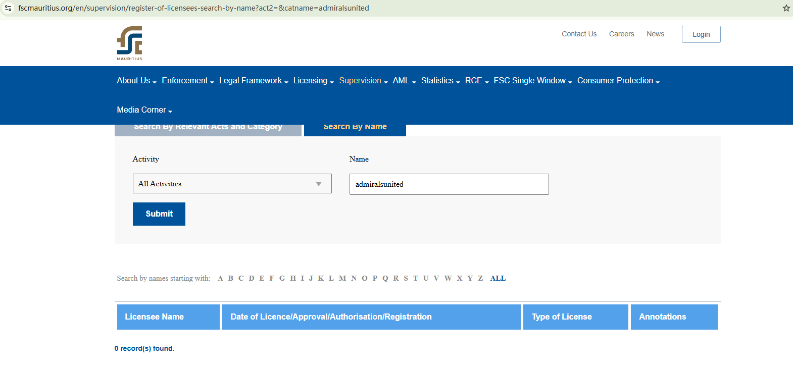 BrokersView found that the domain "https://admiralsunited.com/" is currently inaccessible. This is widely regarded as a significant red flag, as the suspension of a broker's website often points to underlying regulatory or operational issues.