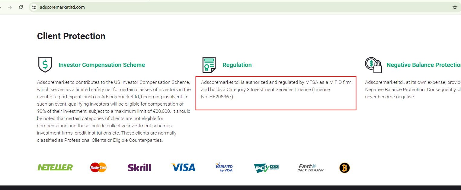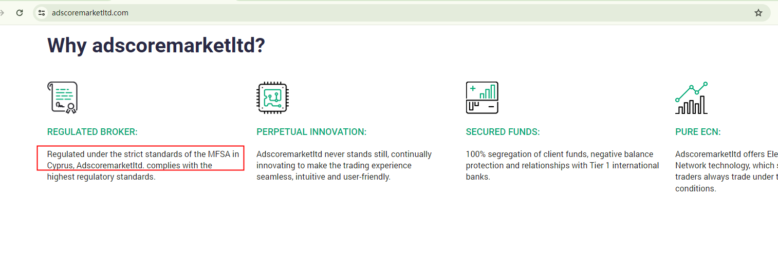 In essence, Adscoremarketltd is not regulated by any governing body. Entrusting it with investors' funds is highly risky, as there are no legal protections in place to safeguard the funds.