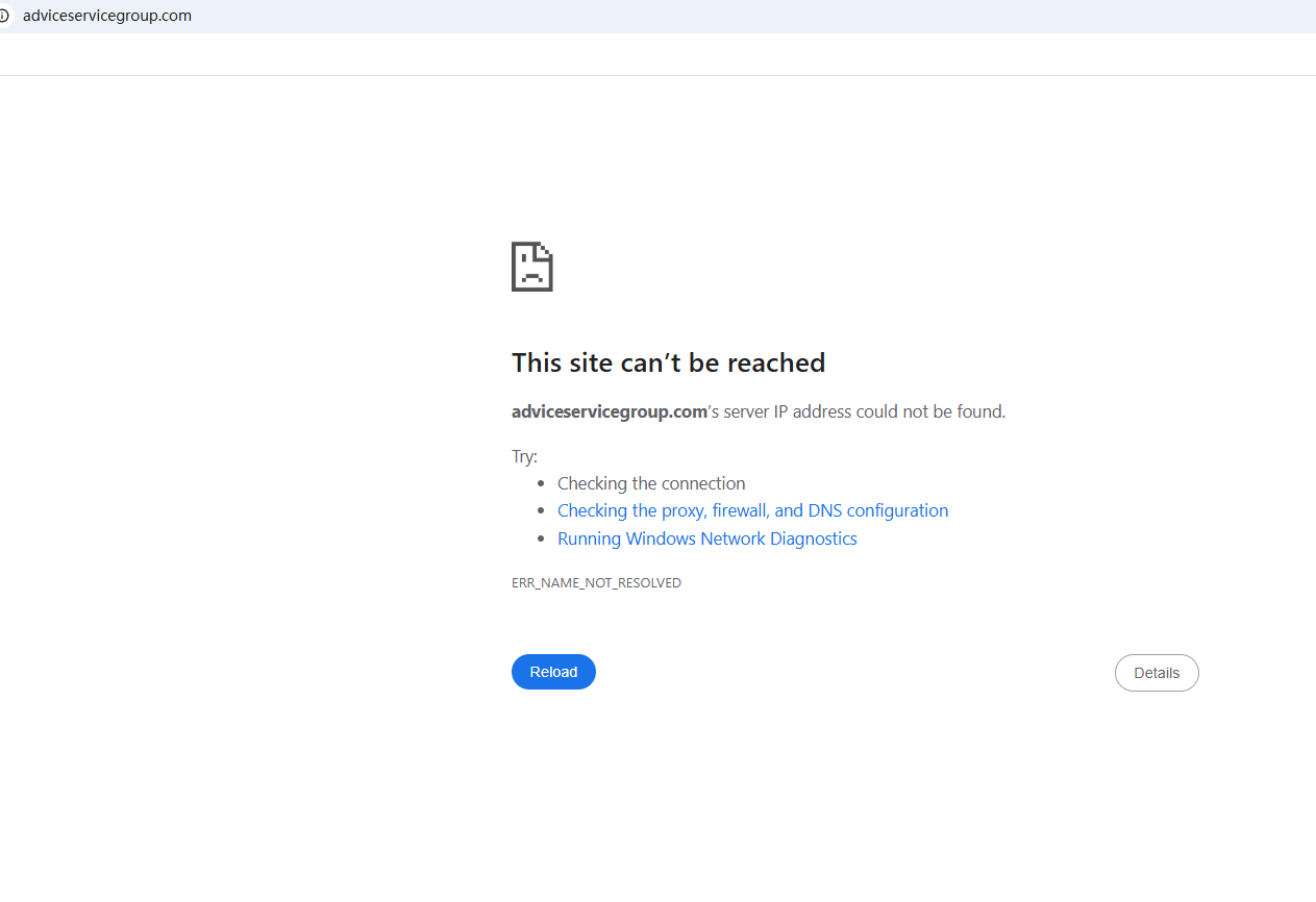BrokersView found that the domain "https://adviceservicegroup.com/" is currently inaccessible. This is widely regarded as a significant red flag, as the suspension of a broker's website often points to underlying regulatory or operational issues.