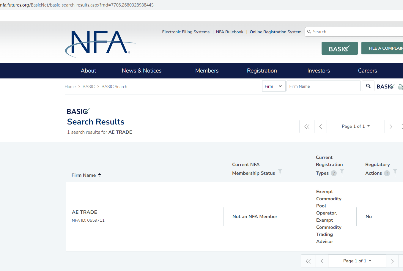 Upon investigation, we found a company AE Trade in the NFA BASIC, but the ID is inconsistent with its claim. Furthermore, it is not a member of NFA and its NFA ID is only for tracking purposes. This cannot be used as effective evidence for regulating foreign exchange, and we found that the ASIC license number 488828 doesn't belong to it, in addition, we didn't find any matching information in the FinCEN.
