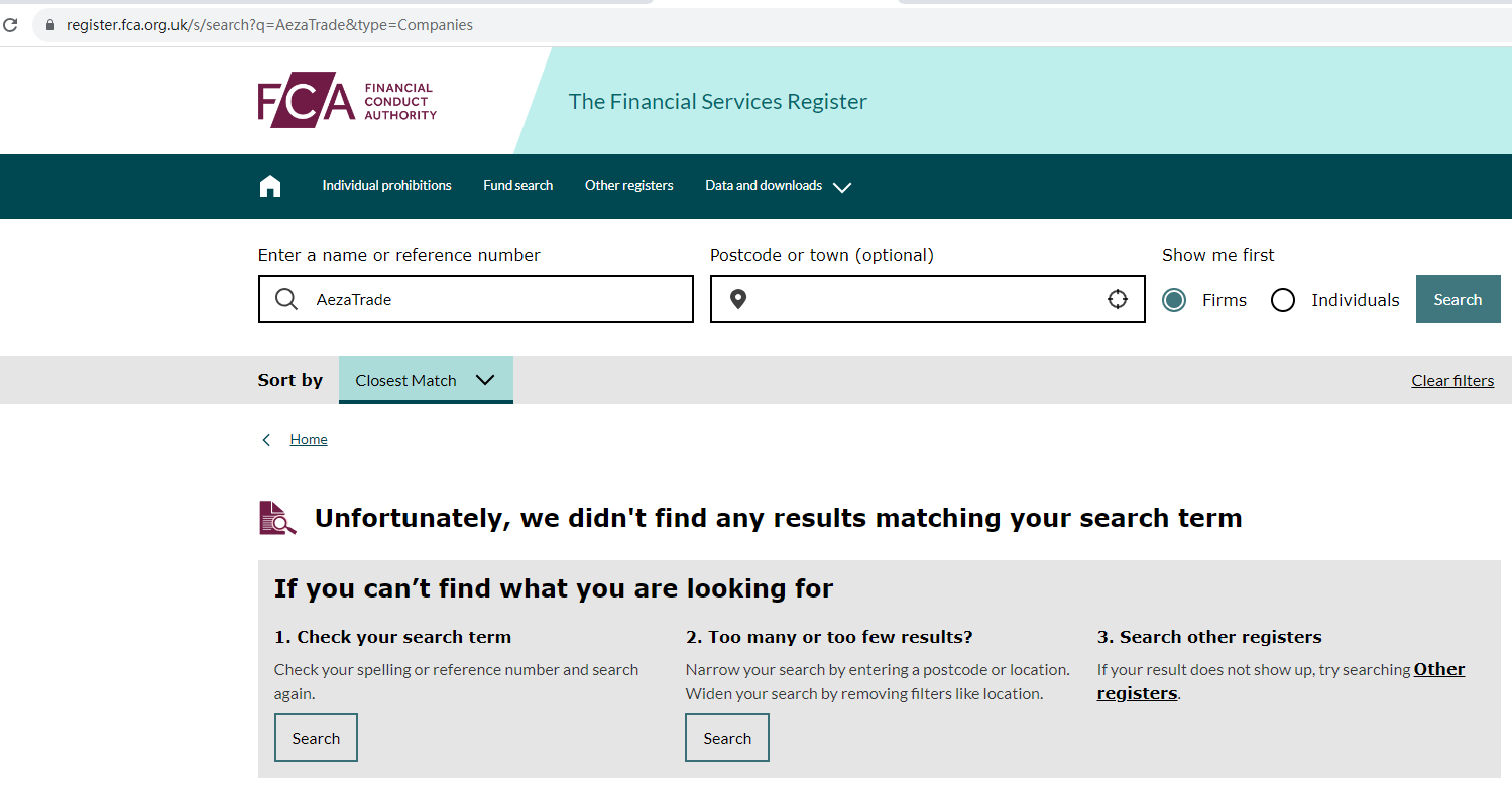 AezaTrade claims to be registered in England, we searched the U.K Financial Conduct Authority (FCA) but found no matching results. The truth is that AezaTrade is not under valid regulation by any regulators to do forex. Investors' funds in this broker are unsafe and cannot be protected by any law.