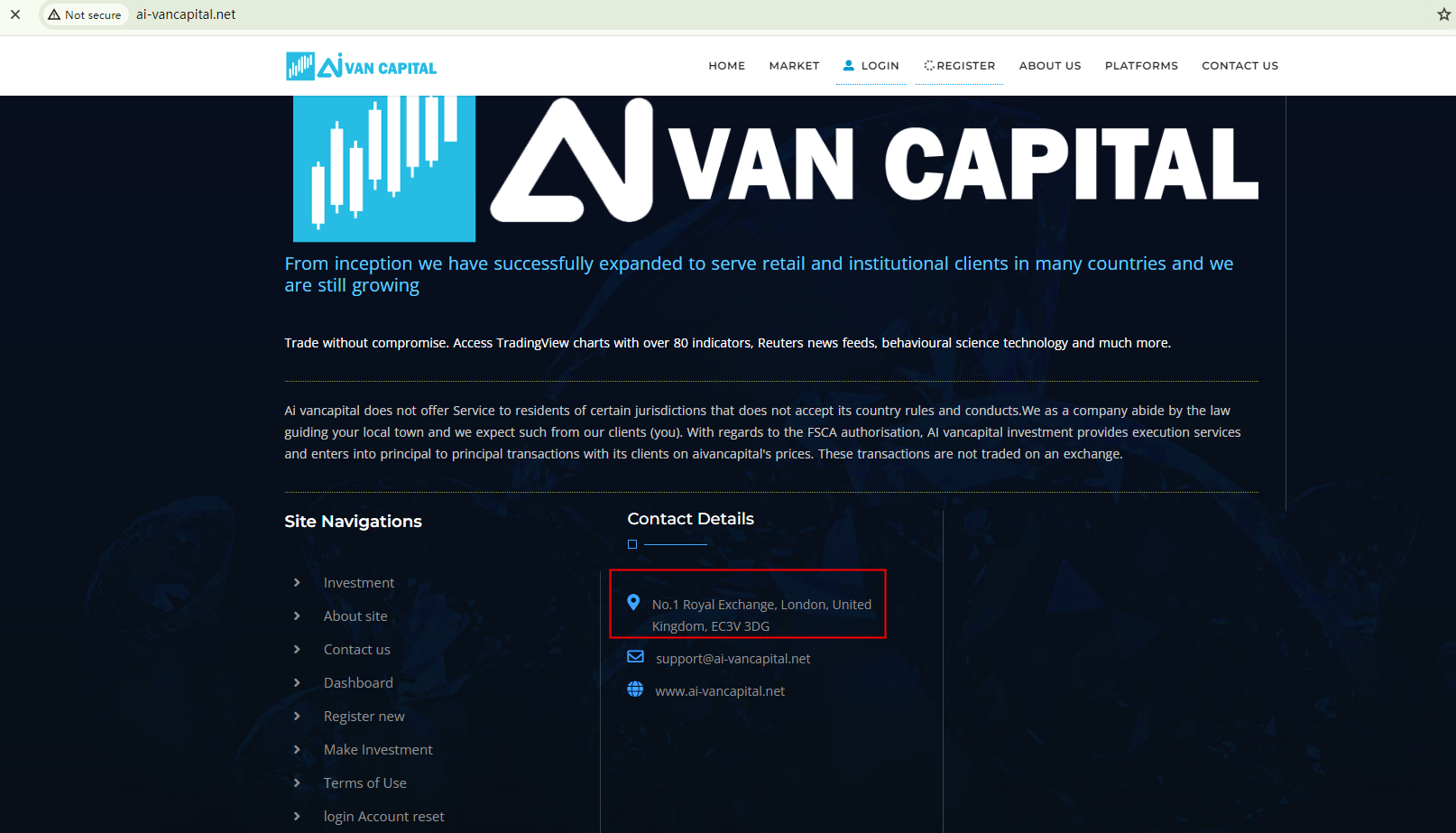 The company also claims to be a partner with the London Stock Exchange, but it does not provide any solid evidence to support this partnership. Its domain name, ai-vancapital.net, was only recently registered in mid-January 2024. The recent establishment of its domain name casts doubt on its alleged association with the exchange.