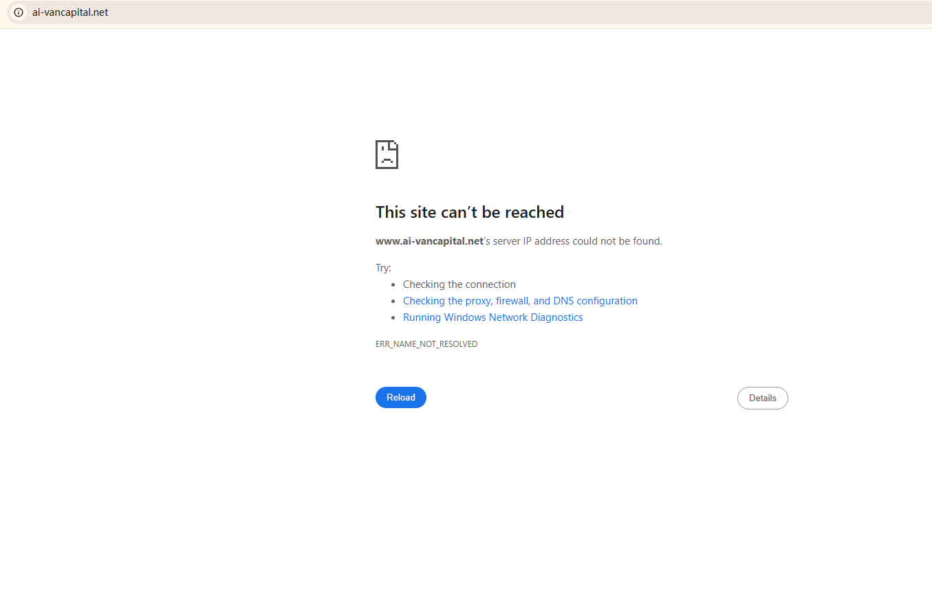 BrokersView found that the domain "http://www.ai-vancapital.net/" is currently inaccessible. This is widely regarded as a significant red flag, as the suspension of a broker's website often points to underlying regulatory or operational issues.