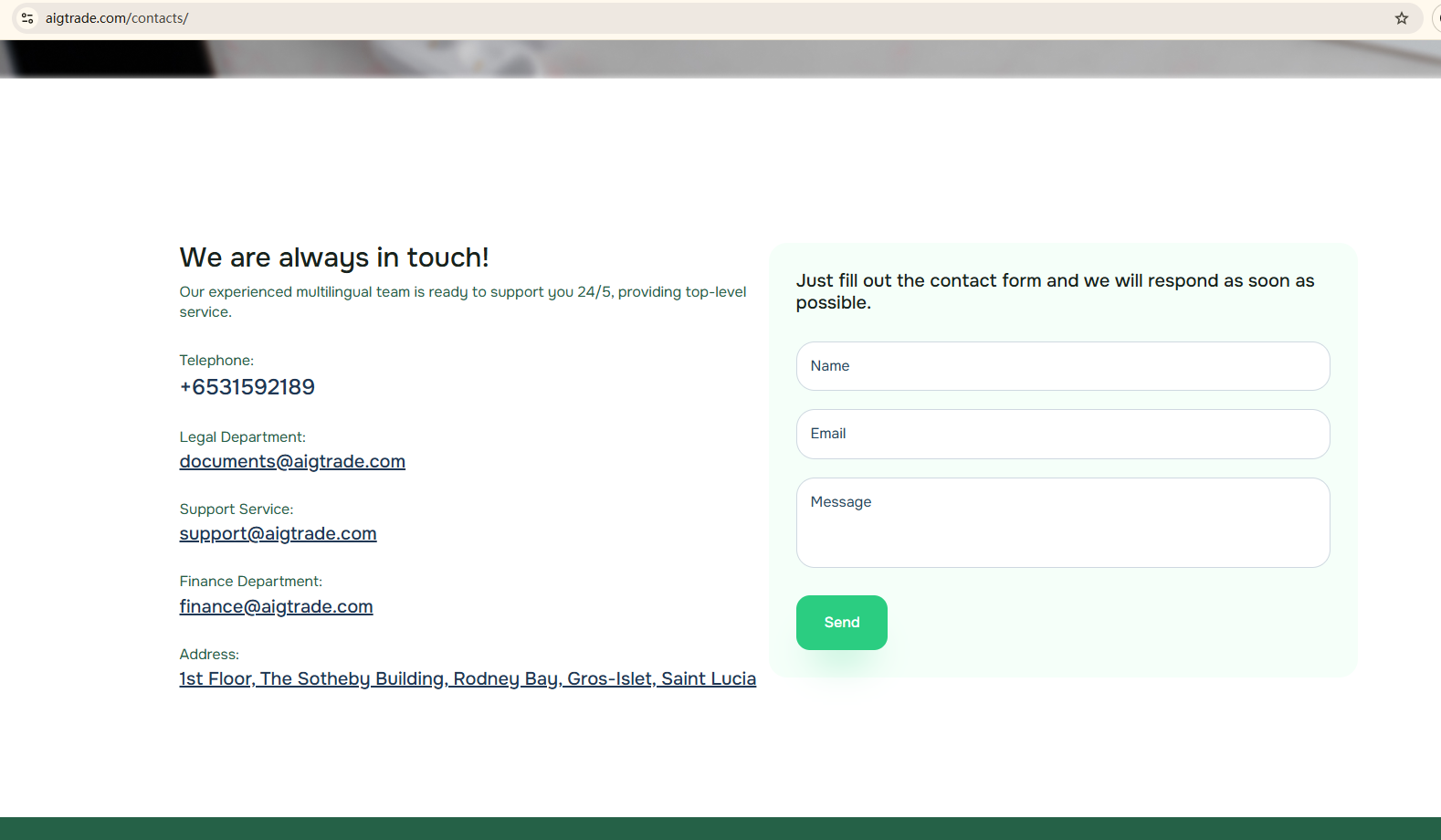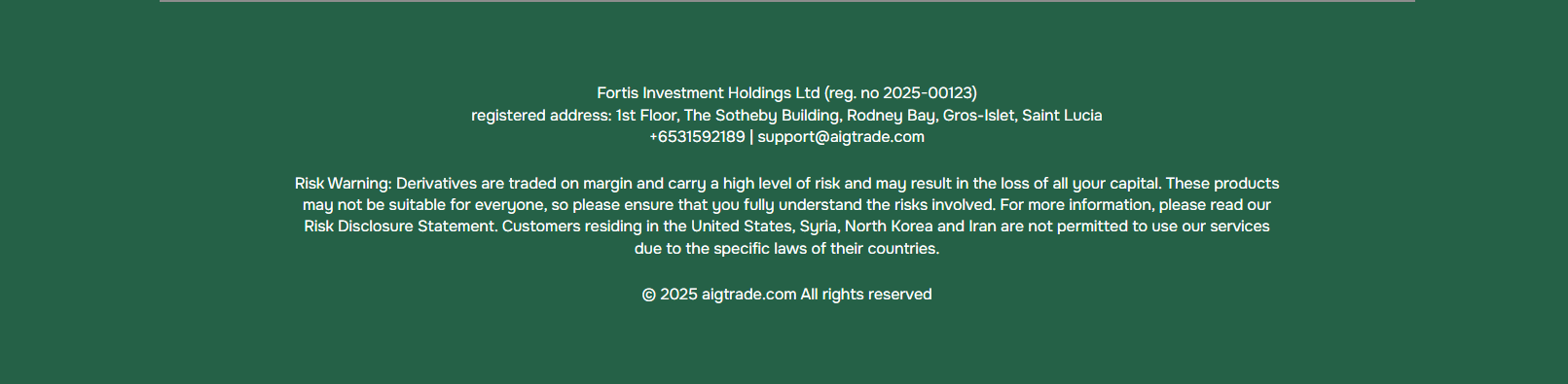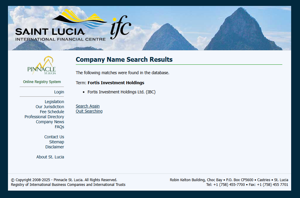 AIG Trade claims to operate under Fortis Investment Holdings Ltd, which is registered in Saint Lucia. While we can confirm that a matching company exists in the Saint Lucia International Financial Centre (IFC) registry, this registration only grants it International Business Company (IBC) status. This does not constitute a valid financial licence. The IFC neither regulates nor licenses forex trading activities.