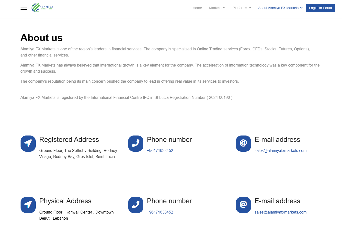 Alamiya FX Markets claims to be registered in Saint Lucia and lists a physical address in Lebanon, our investigation raises significant concerns about its regulatory compliance and legitimacy.