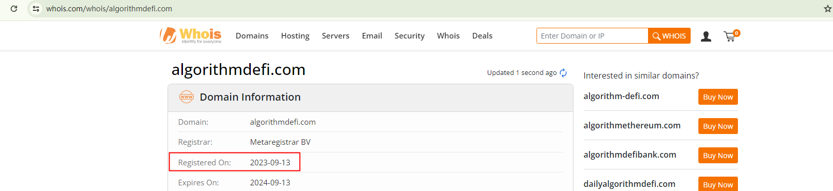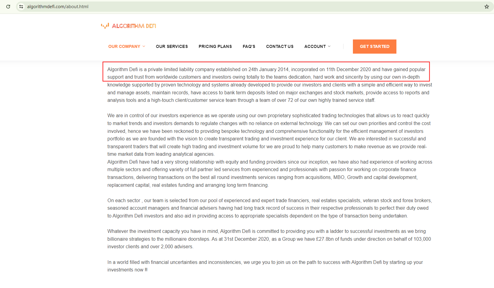 ALGORITHM DEFI presents itself as a well-established brand. Yet, the recent registration of its domain name in September 2023 contradicts this claim. This discrepancy between the stated history and the actual inception date raises concerns.