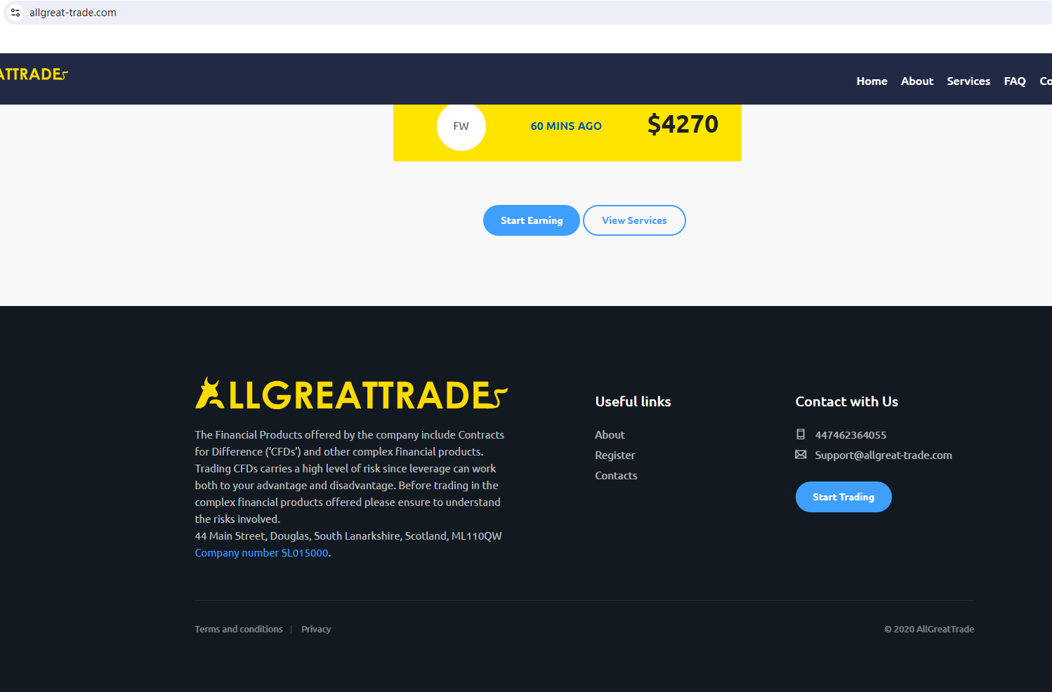 In essence, AllGreatTrade is not regulated by any governing body. Entrusting it with investors' funds is highly risky, as there are no legal protections in place to safeguard the funds.
