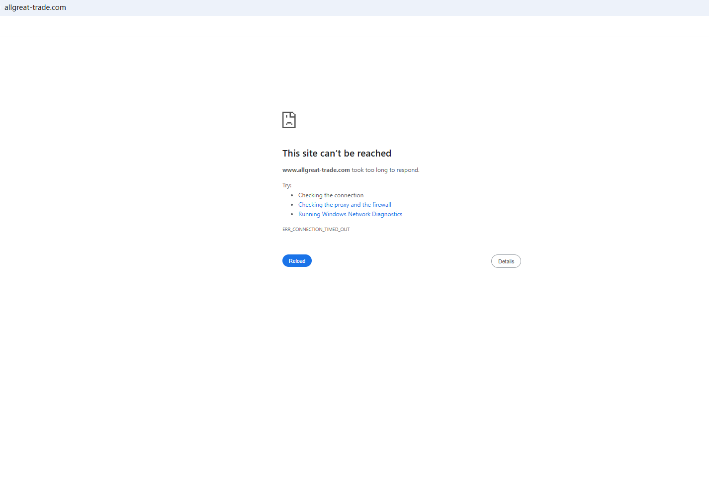 BrokersView found that the domain "allgreat-trade.com" is currently inaccessible. This is widely regarded as a significant red flag, as the suspension of a broker's website often points to underlying regulatory or operational issues.