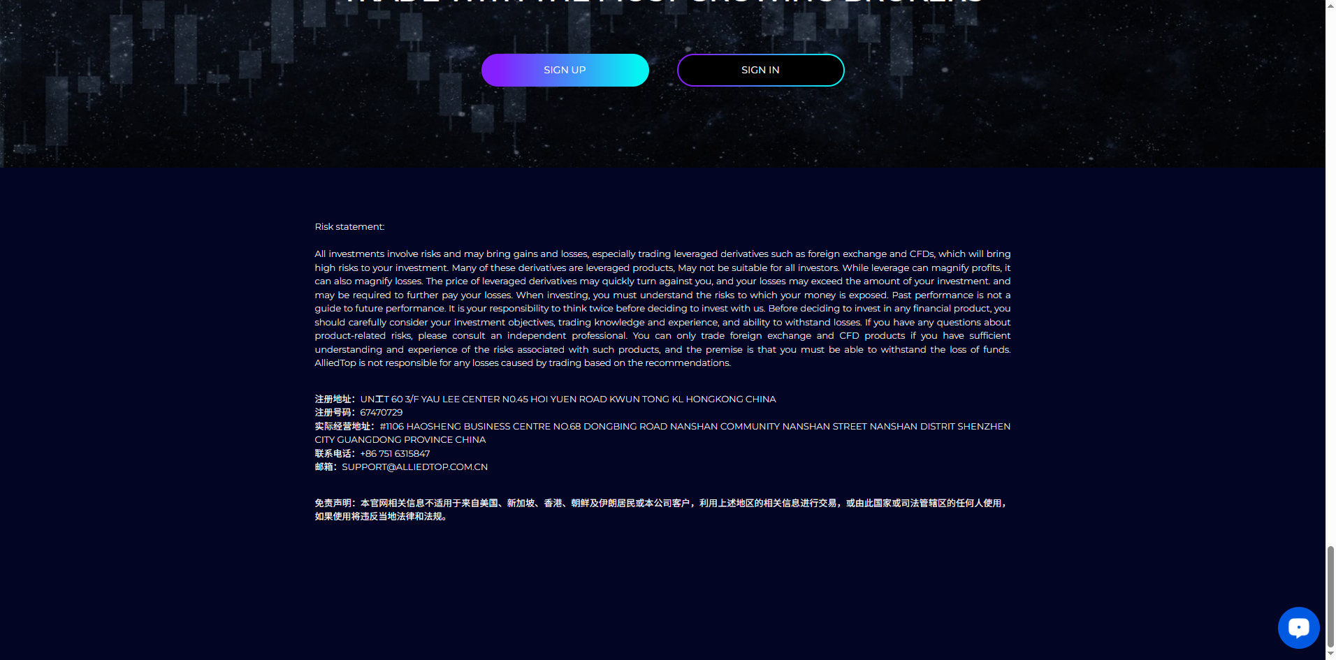 Additionally, the company states it is registered in Hong Kong. Yet, a search of the Securities and Futures Commission (SFC) database also reveals no evidence that AlliedTop holds a valid license to operate.
