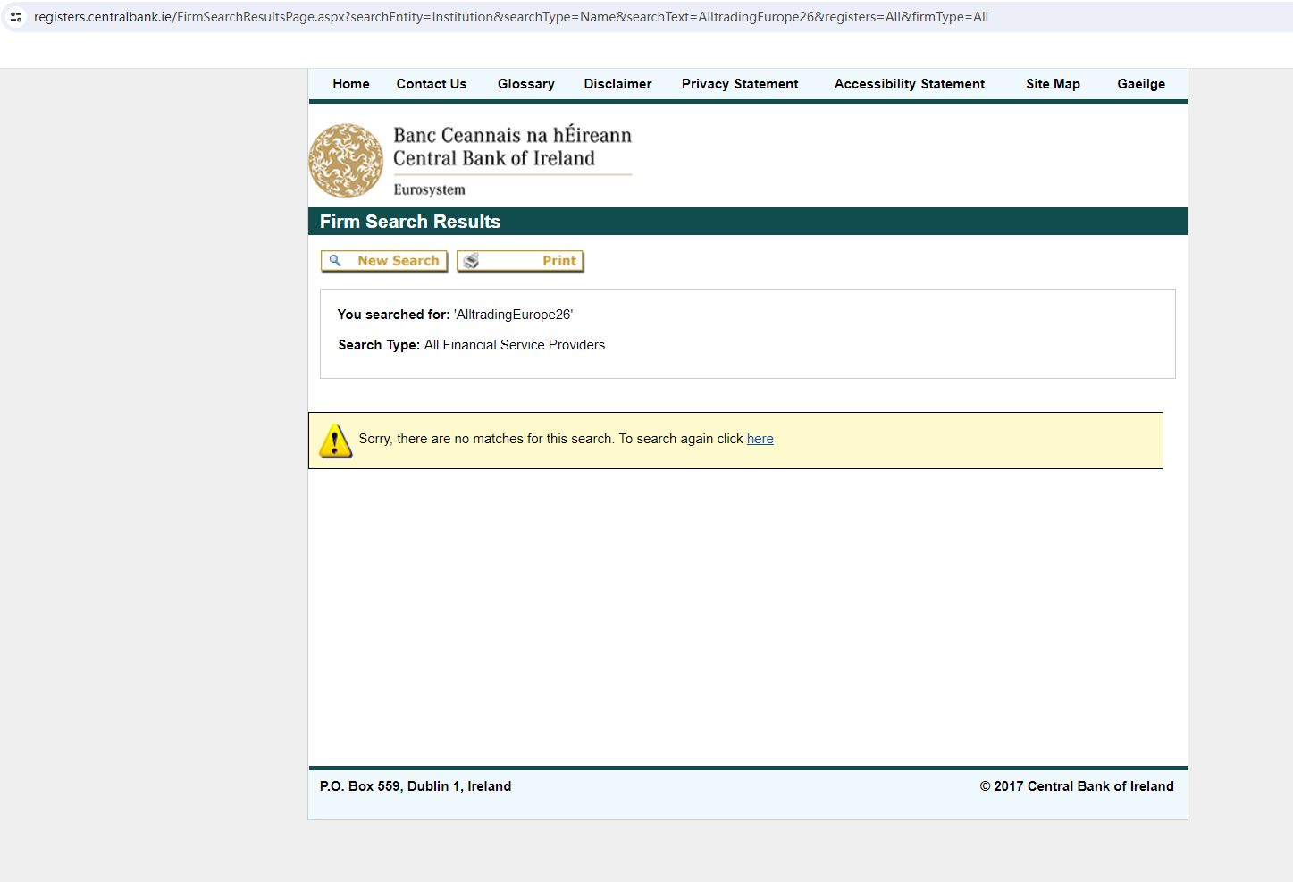 On March 19, 2024, the Financial Authority (Autorité des Marchés Financiers, AMF) added AlltradingEurope26 to warning list for it being an unauthorized company engaging in forex activities. https://www.amf-france.org/en/warnings/blacklists?conditions%5Bcategorie%5D=224&page=0