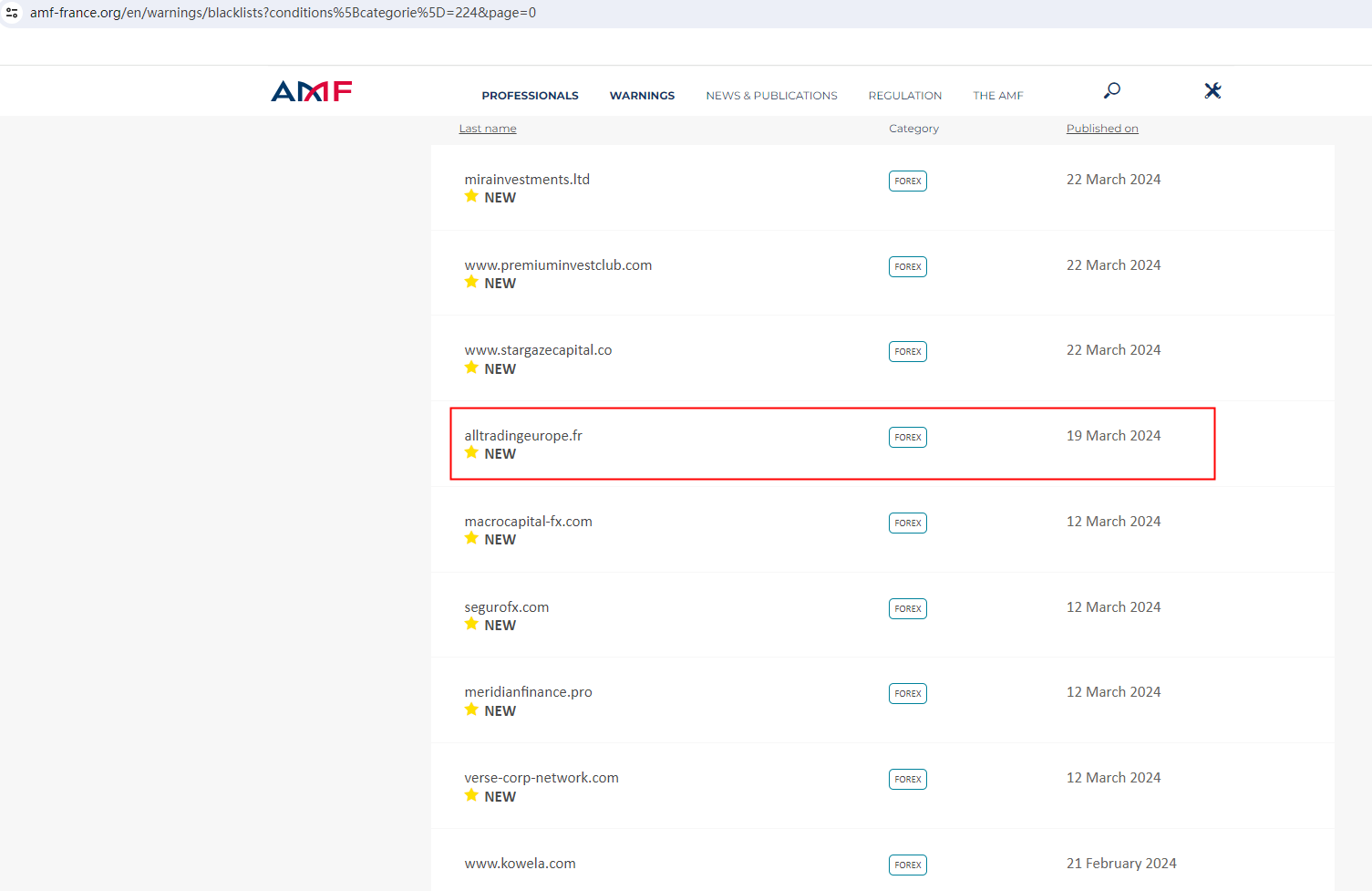 In addition, the Financial Authority (Autorité des Marchés Financiers, AMF) added AlltradingEurope26 to the warning list for it being an unauthorized company engaging in forex activities.