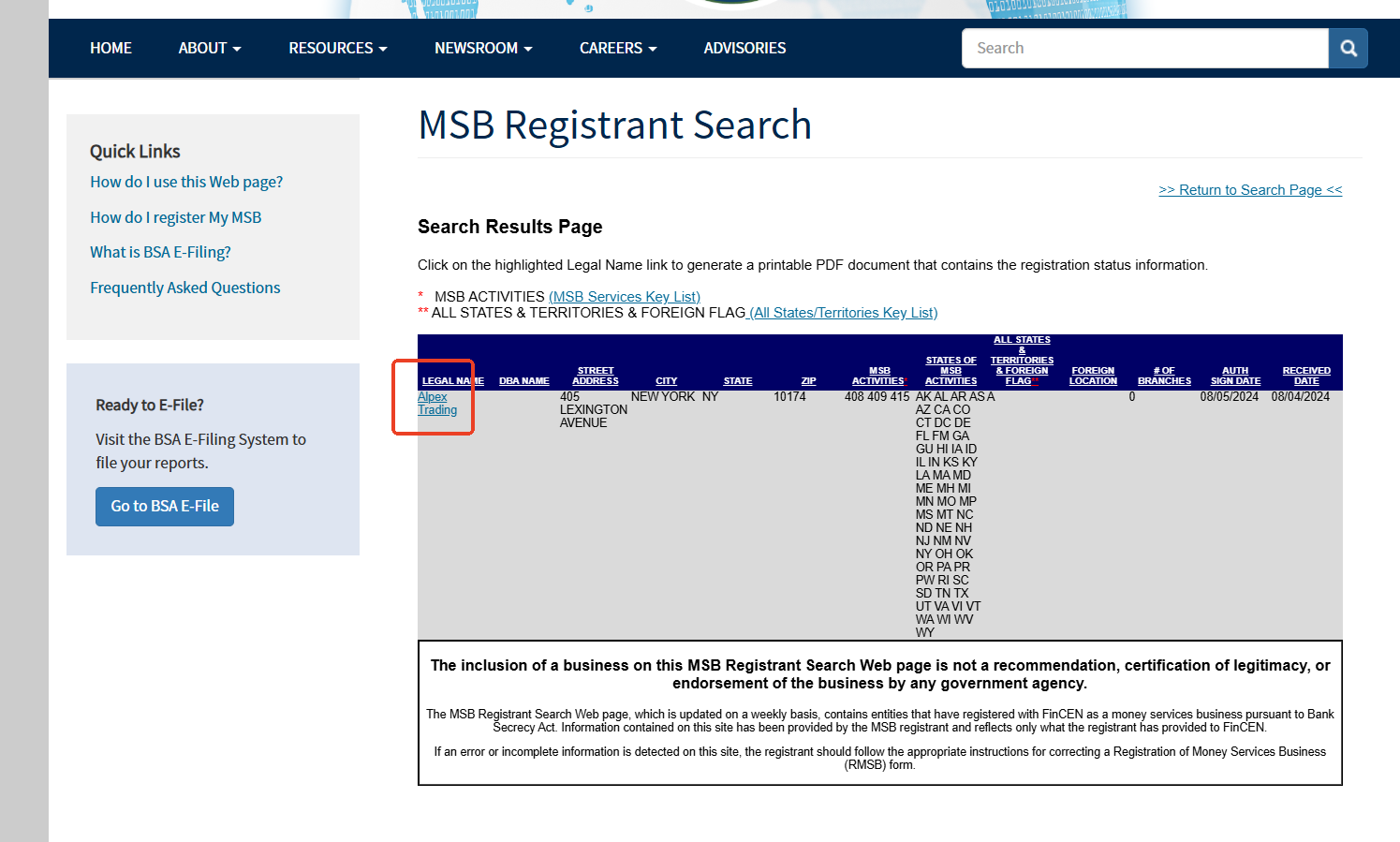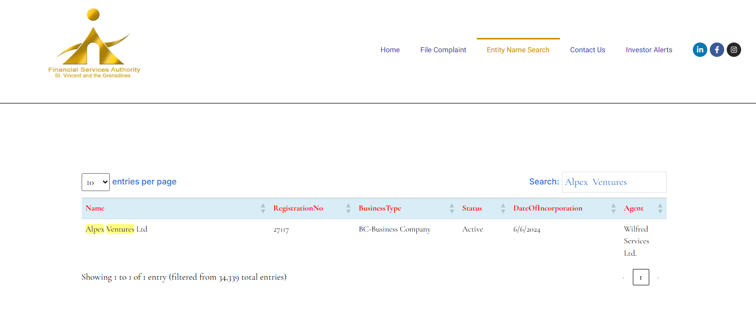 Alpex Trading claims to be operated by Alpex Ventures Ltd, registered with the Financial Services Authority of Saint Vincent and the Grenadines (SVG FSA) and holding an MSB registration in the U.S. While these registrations are confirmed, neither grants authority to conduct or regulate forex trading — the former only confers International Business Company (IBC) status, and the latter does not cover financial services oversight. Additionally, Alpex Trading holds no valid license from any major financial regulatory body, which may expose investors to potential risks. Therefore, we suspect Alpex Trading may be a scam.