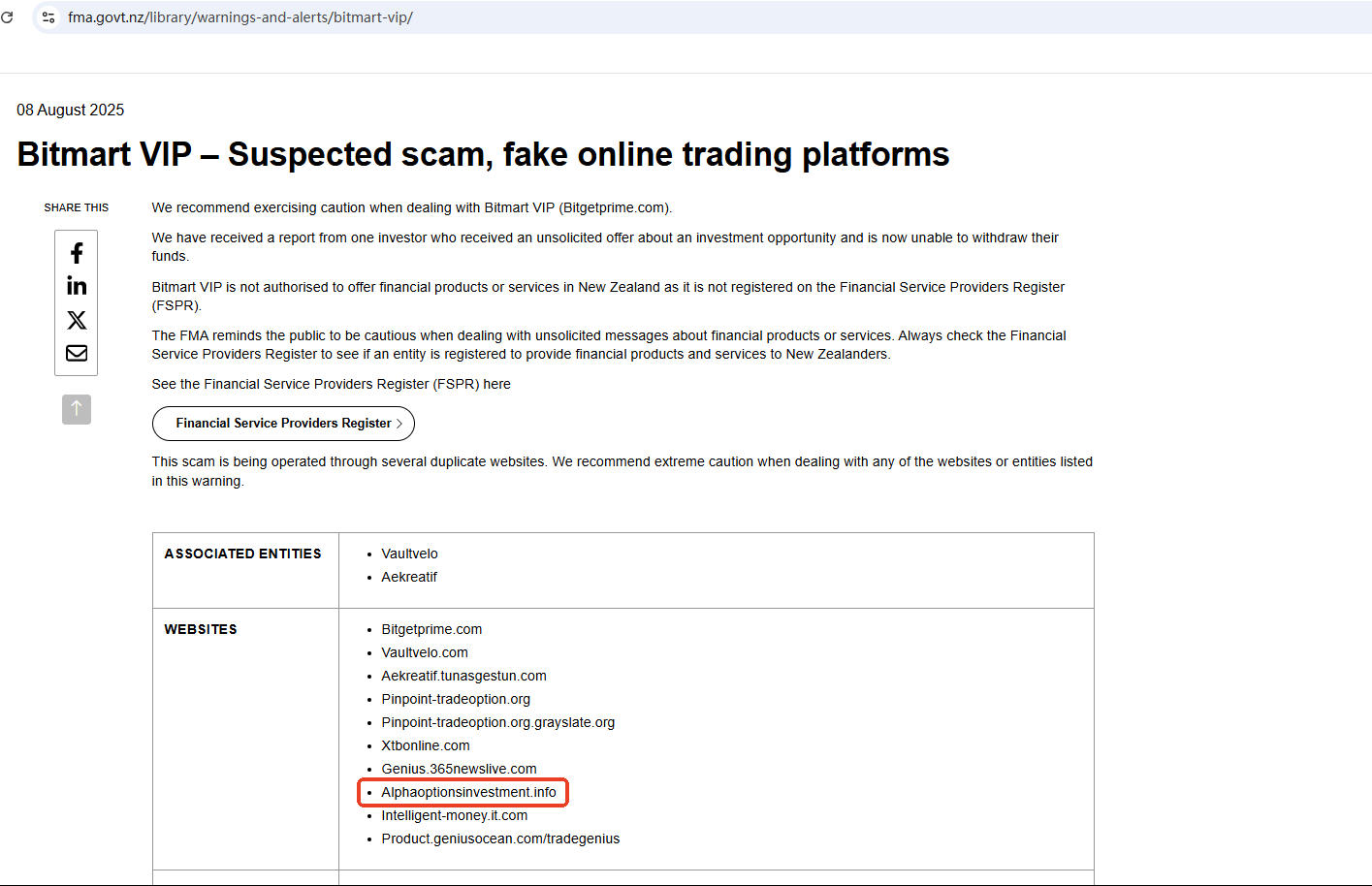 On Aug 8, 2025, the New Zealand Financial Markets Authority (NZ FMA) added Alphaoptions Investment its warning list, stating that this is a fake investment platform. https://www.fma.govt.nz/library/warnings-and-alerts/bitmart-vip/