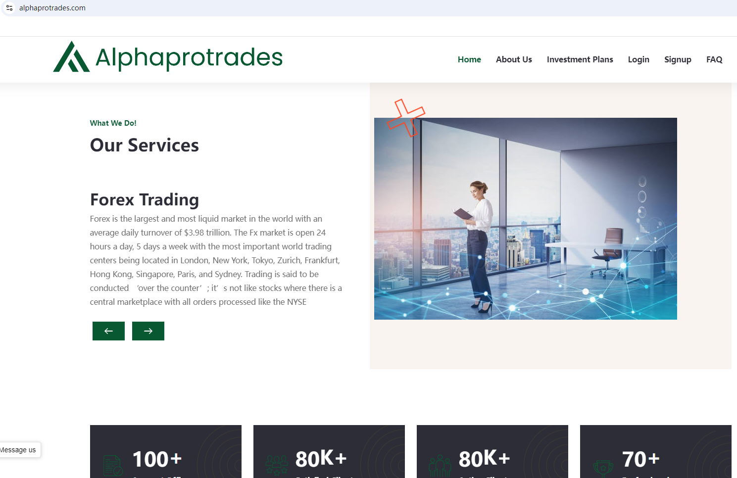 BrokersView found that the domain "https://alphaprotrades.com/" is currently inaccessible. This is widely regarded as a significant red flag, as the suspension of a broker's website often points to underlying regulatory or operational issues.