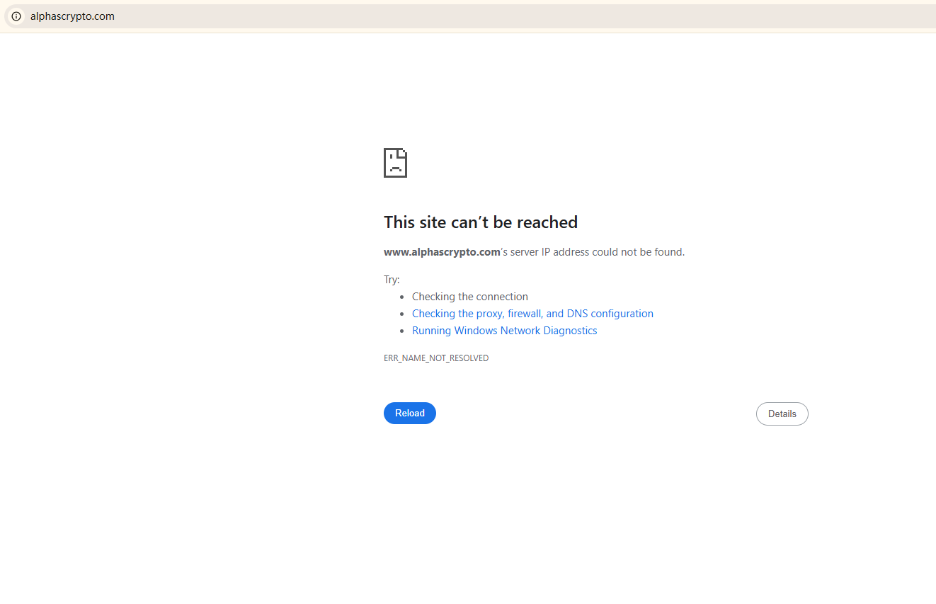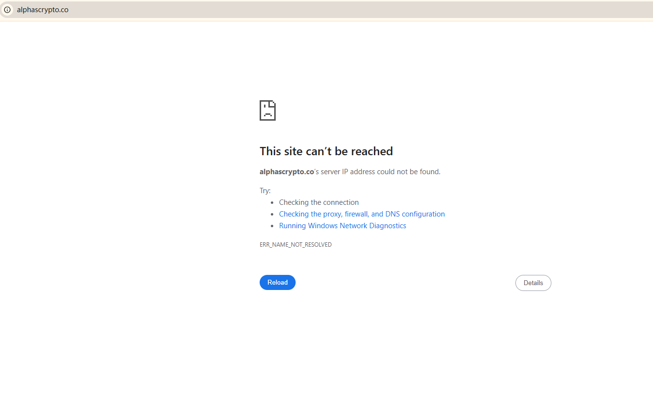 BrokersView found that the domain "https://www.alphascrypto.com/; https://alphascrypto.co/" are currently inaccessible. This is widely regarded as a significant red flag, as the suspension of a broker's website often points to underlying regulatory or operational issues.