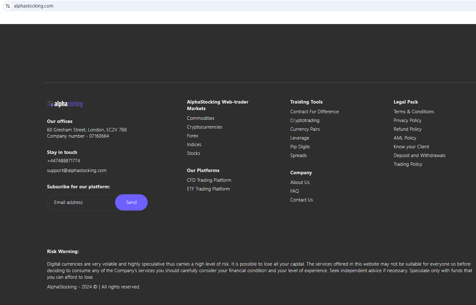 Therefore, entrusting AlphaStocking with your funds is risky due to its unregulated status.