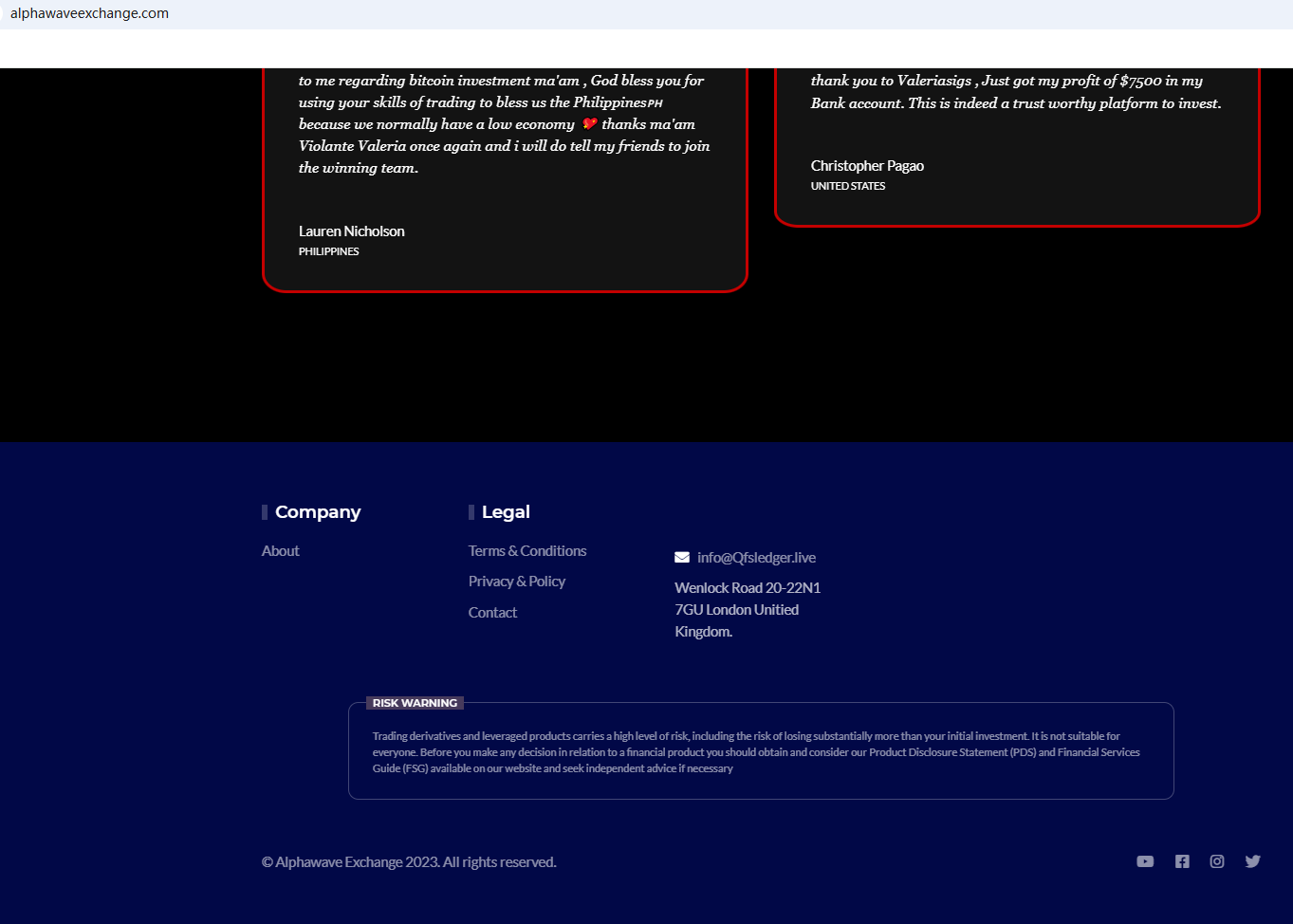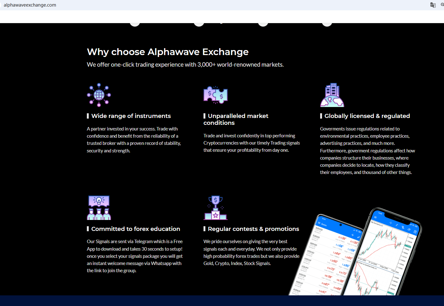 This website uses common templates for fraudulent websites and has been tagged by Brokersview many times before. This type of website has the same web design and rhetoric, and even claims global regulation, but does not display any strong regulatory certificates on the website to prove its authenticity. Alphawave Exchange claims its office address is in the UK, and what is ridiculous is that we found the Financial Conduct Authority (FCA) issued a warning regarding Alphawave Exchange, suspecting that this company may be offering financial services or products without the necessary authorization.