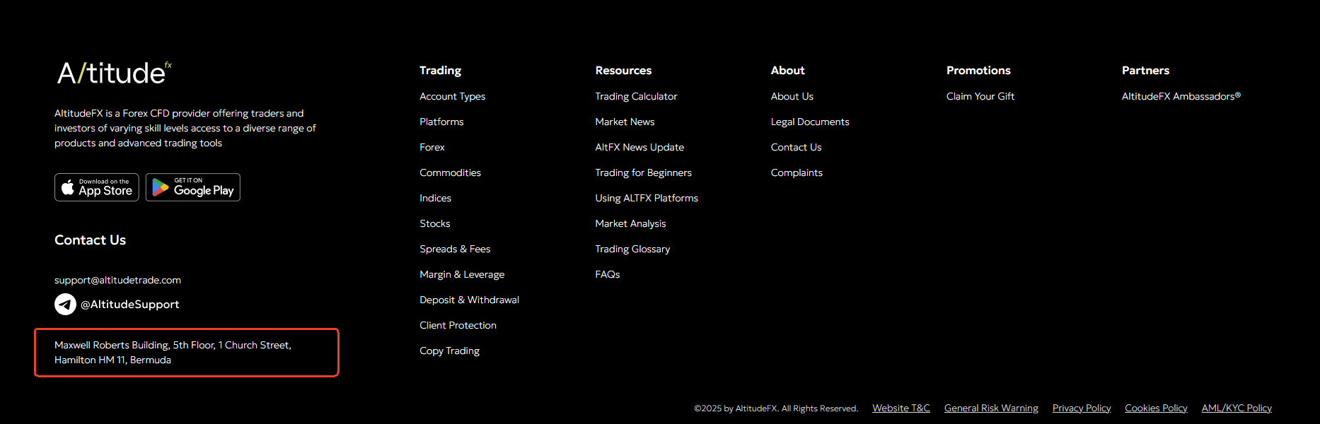 AltitudeFX's website offers no verifiable details about regulatory oversight and only mentions being registered in Bermuda. However, our search of the Bermuda Monetary Authority (BMA)—the jurisdiction’s official financial regulator—found no record of AltitudeFX. This confirms that the platform is not licensed to provide forex trading services in Bermuda or under any legitimate regulatory framework. Besides, AltitudeFX is unlicensed by any regulator. Therefore, AltitudeFX appears to be a scam.