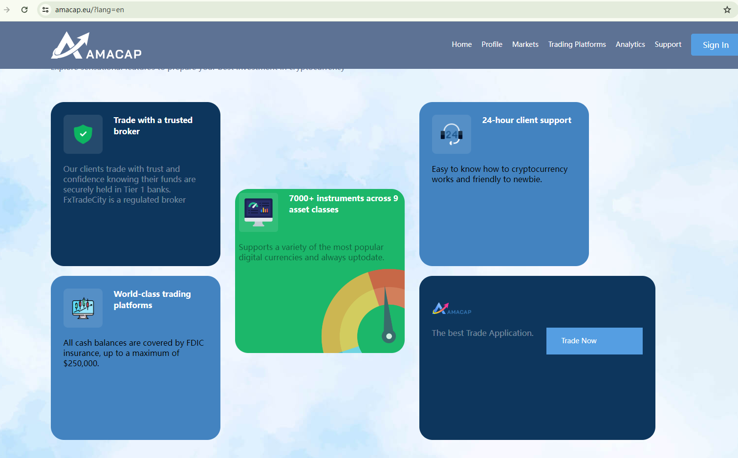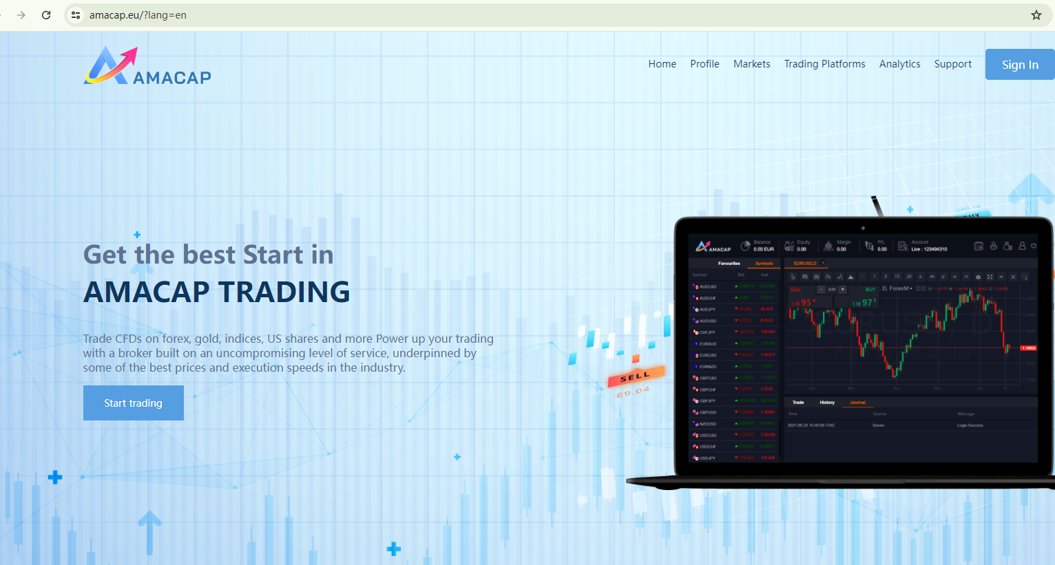 BrokersView found that the domain "https://amacap.eu/?lang=en" is currently inaccessible. This is widely regarded as a significant red flag, as the suspension of a broker's website often points to underlying regulatory or operational issues.