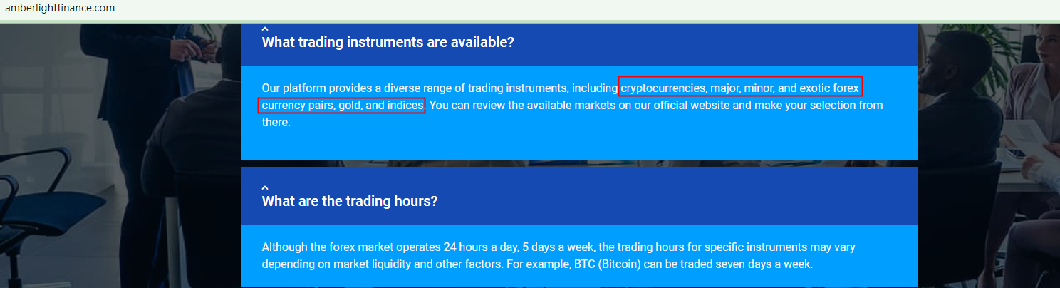What's more, forex brokers in the US need to be registered as a member of the National Futures Association (NFA) before soliciting customers. However, AMBERLIGHT FINANCE is not an NFA member and thus not subject to this regulator's oversight. Its NFA ID is for tracking purposes only.
