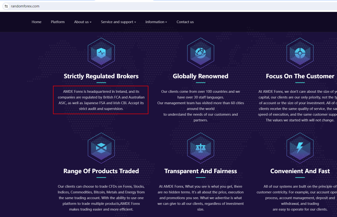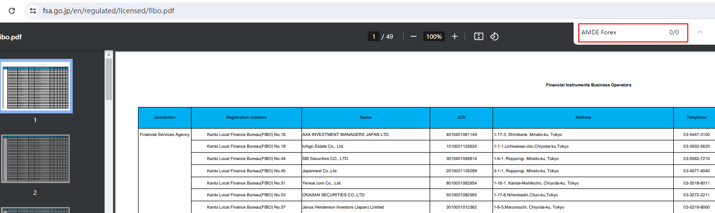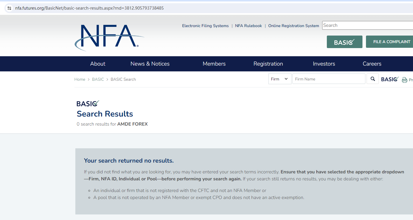 Like its deceptive counterparts, AMDE Forex claims to be regulated by the Financial Conduct Authority (FCA), Australian Securities & Investment Commission (ASIC), Financial Services Agency (Japanese FSA) and Central Bank of Ireland (CBI), as well as the National Futures Association (NFA). However, the reality contradicts these claims: there are no records in the ASIC, Japanese FSA and CBI registers, and it seems to only possess an NFA ID for tracking purposes. The NFA has explicitly stated that AMDE Forex is not subject to its oversight. These findings provide adequate reasons for investors to steer clear of AMDE Forex, a fraudster operating beyond the regulatory framework.