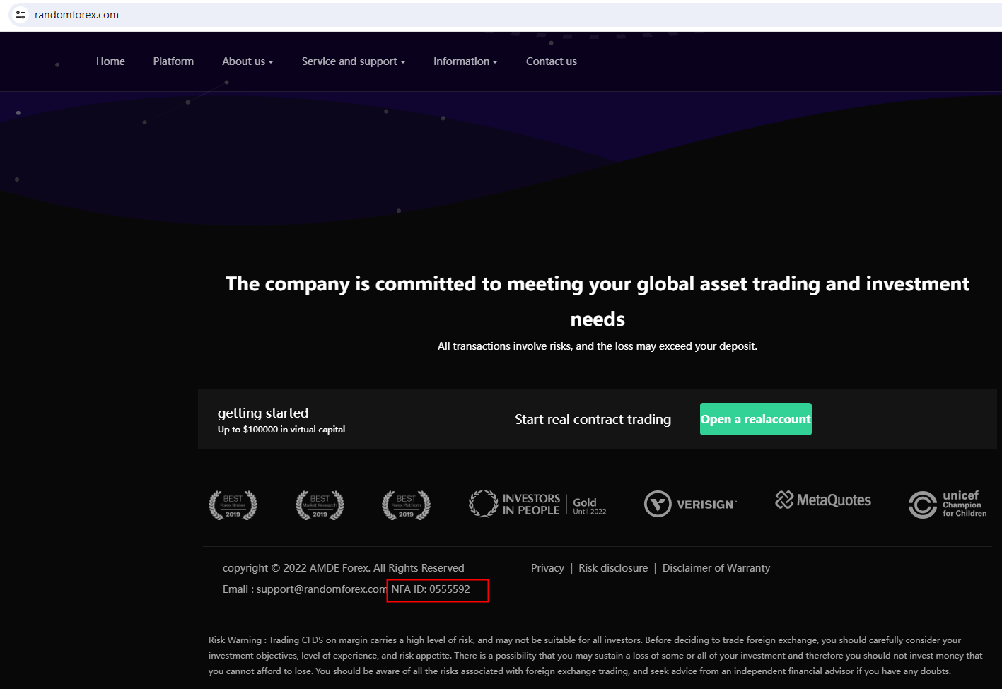 These entities typically have short lifespans, vanishing as soon as their deceptive activities are detected, only to resurface under a different brand and web address. These sites are often hastily constructed. For instance, our examination of AMDE Forex's domain name, randomforex.com, suggests that it was registered in November 2023.
