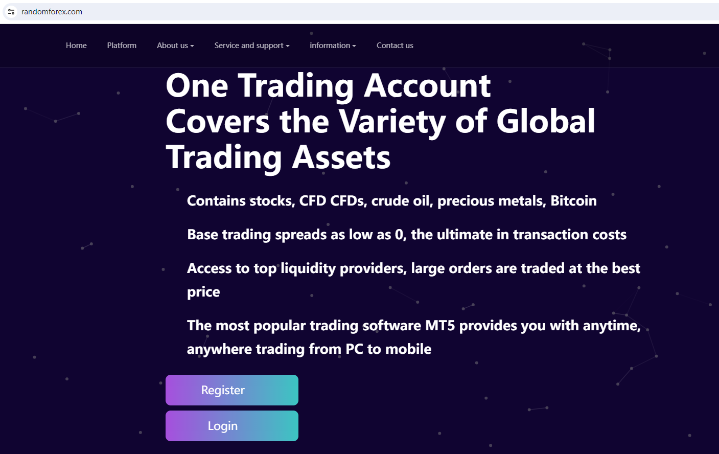 BrokersView found that the domain "https://www.randomforex.com/" is currently inaccessible. This is widely regarded as a significant red flag, as the suspension of a broker's website often points to underlying regulatory or operational issues.