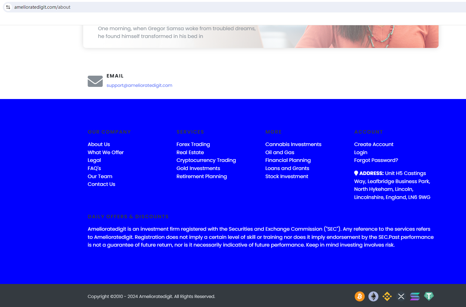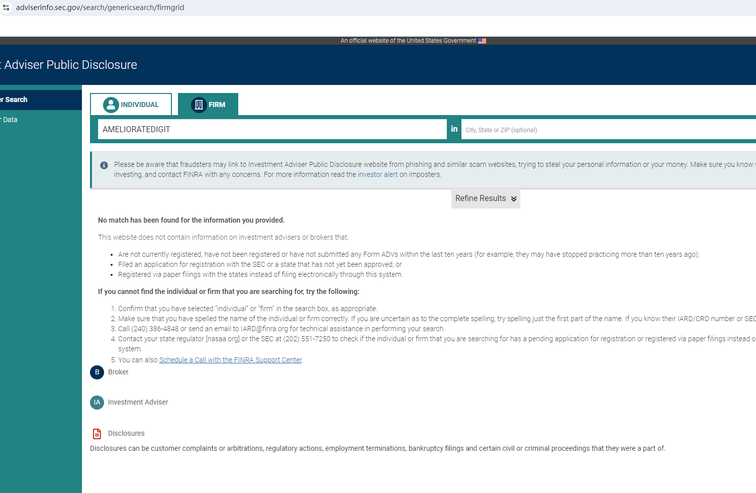 In essence, AMELIORATEDIGIT is not regulated by any governing body. Entrusting it with investors' funds is highly risky, as there are no legal protections in place to safeguard the funds.