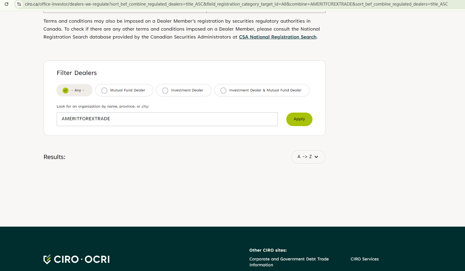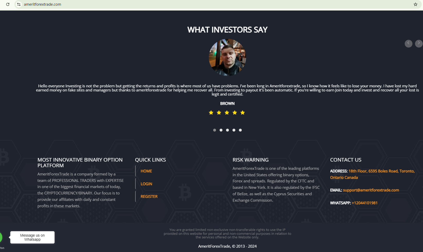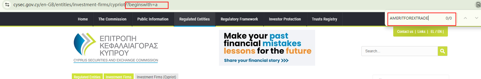 AMERITFOREXTRADE falsely claims to be regulated by the Belize Financial Services Commission (Belize FSC), Commodity Futures Trading Commission (CFTC), the Cyprus Securities and Exchange Commission (CySEC), and Investment Industry Regulatory Organization of Canada (IIROC). We conducted a search in the registers of the aforementioned regulators but found no corresponding records, indicating that it is not regulated by them at all.