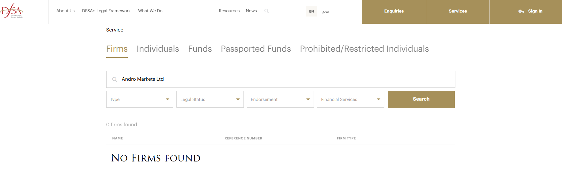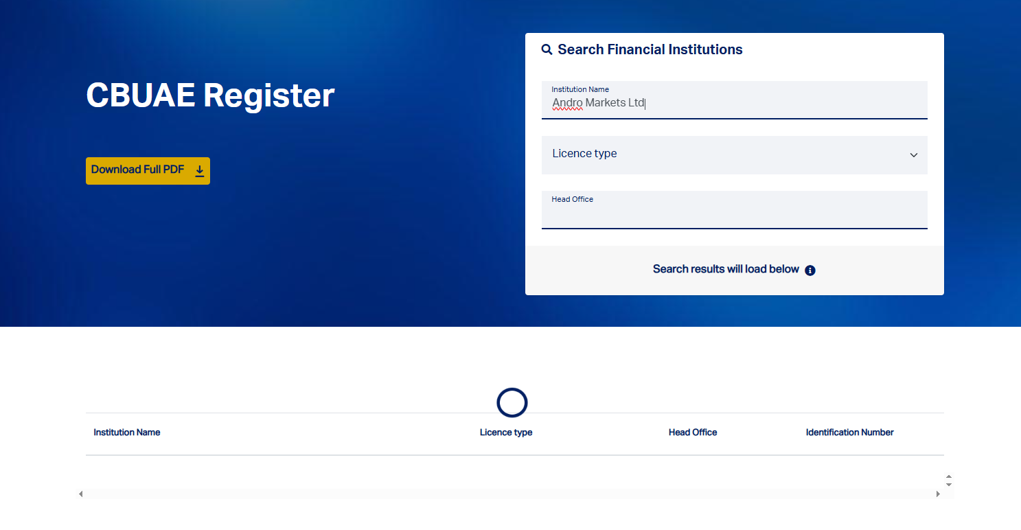 Second, a search of the public registers of all relevant UAE financial regulators, including the Securities and Commodities Authority (SCA), the Dubai Financial Services Authority (DFSA), and the Central Bank of the UAE (CBUAE), shows no record of Andro Markets Ltd or any affiliated entity. This confirms that the platform is not authorized to operate as a broker in Dubai or anywhere else in the UAE.