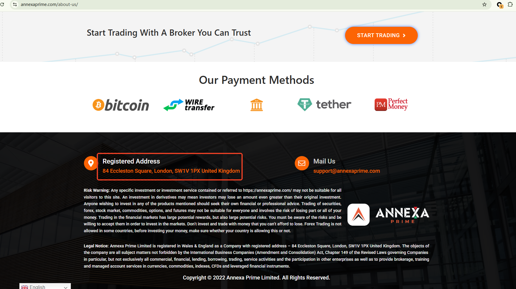 While Annexa Prime promotes itself as a secure trading service, it fails to provide any verifiable information regarding regulatory licenses or compliance credentials. The only publicly available information we could find is that the company claims to registered as a limited company in the United Kingdom. However, upon checking its name against the official registry of authorized firms maintained by the UK’s Financial Conduct Authority (FCA), no matching entity was found. Therefore, we suspect that Annexa Prime is a scam.
