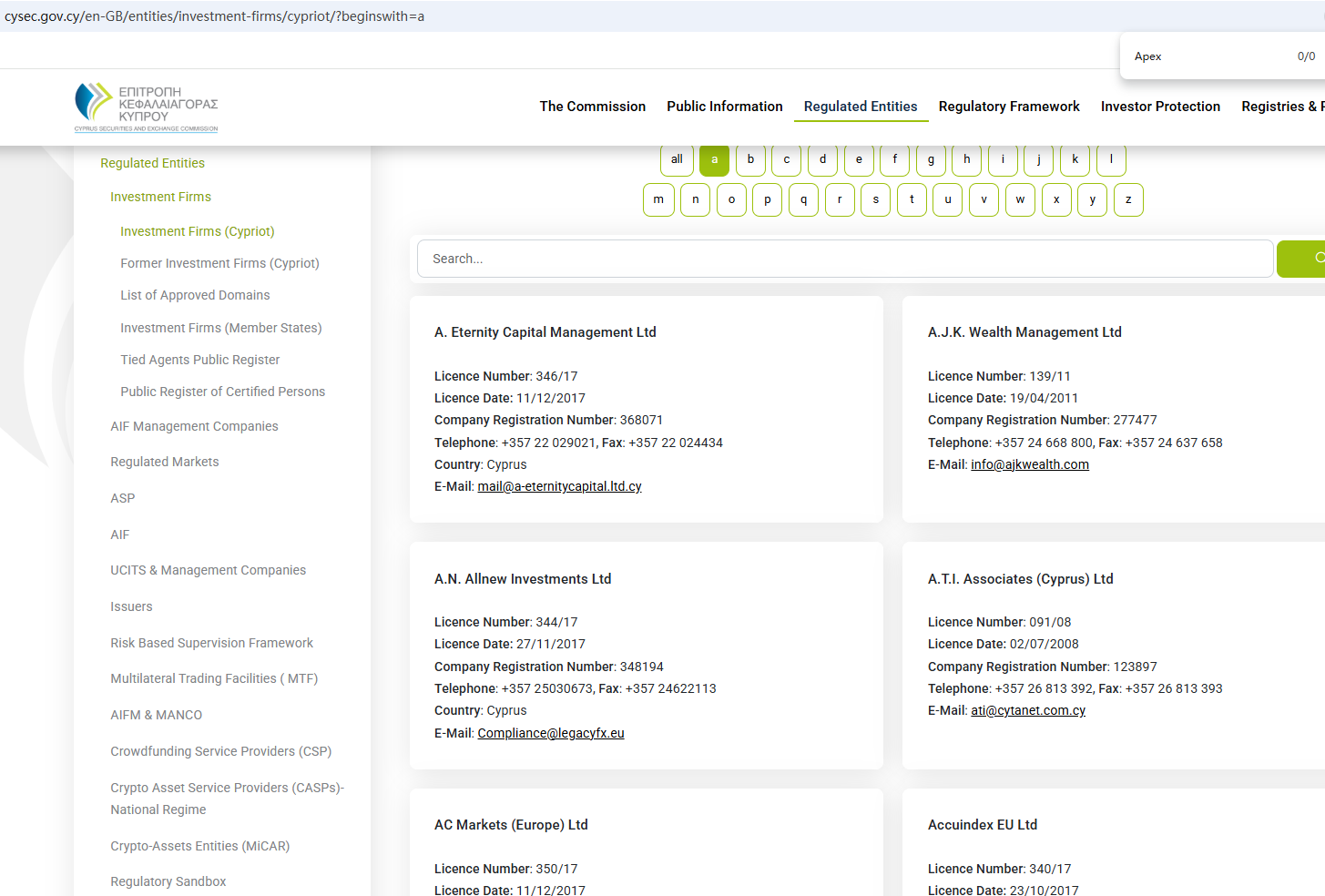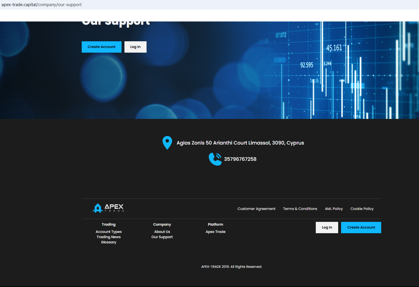 It is located in Cyprus. Upon investigation, no matching information was found in the Cyprus Securities and Exchange Commission (CySEC). What's more, the Financial Services and Markets Authority (FSMA) issued a warning about Apex Trade for the lack of the required authorization.