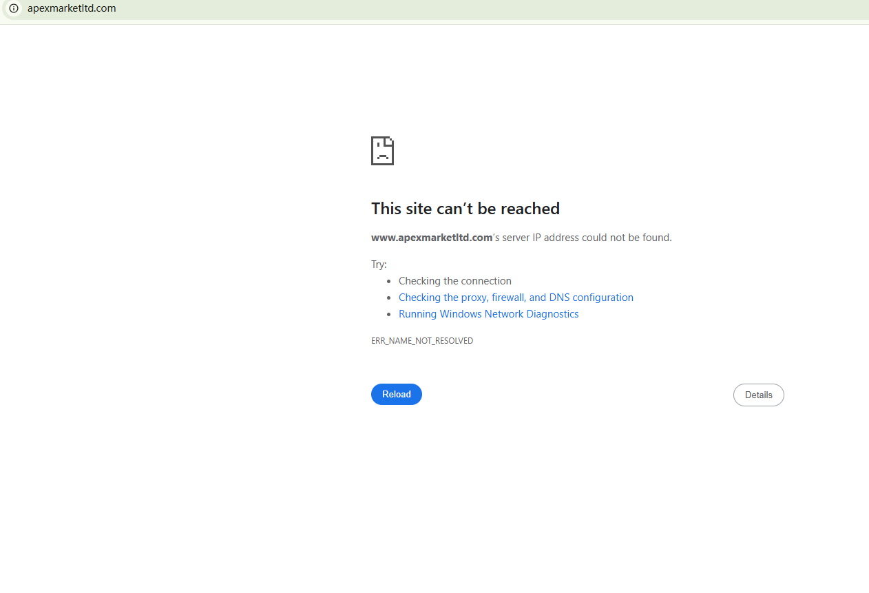 BrokersView found that the domain "https://www.apexmarketltd.com/" is currently inaccessible. This is widely regarded as a significant red flag, as the suspension of a broker's website often points to underlying regulatory or operational issues.