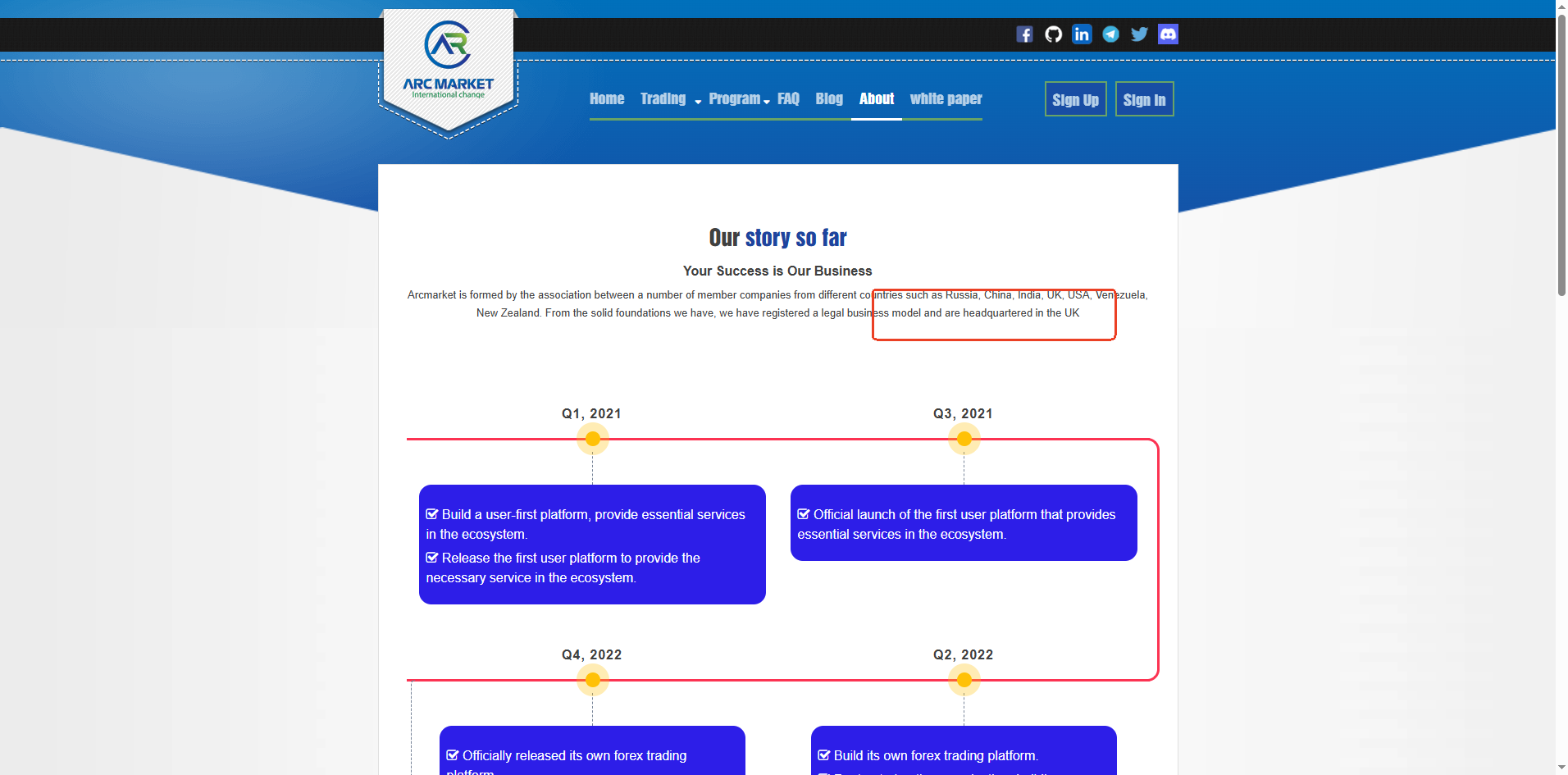 Arc Market's website does not display any information regarding financial regulation; it only states that it is a company registered in the UK. This in itself is suspicious. Furthermore, we have conducted a search in the UK's Financial Conduct Authority (FCA) regulatory system and found no record of Arc Market or any related entity authorized to conduct financial activities under the FCA.