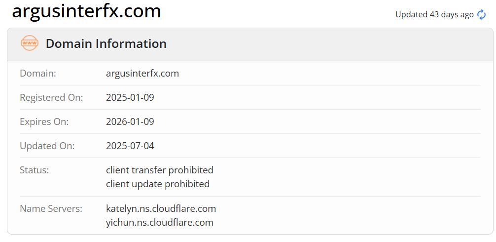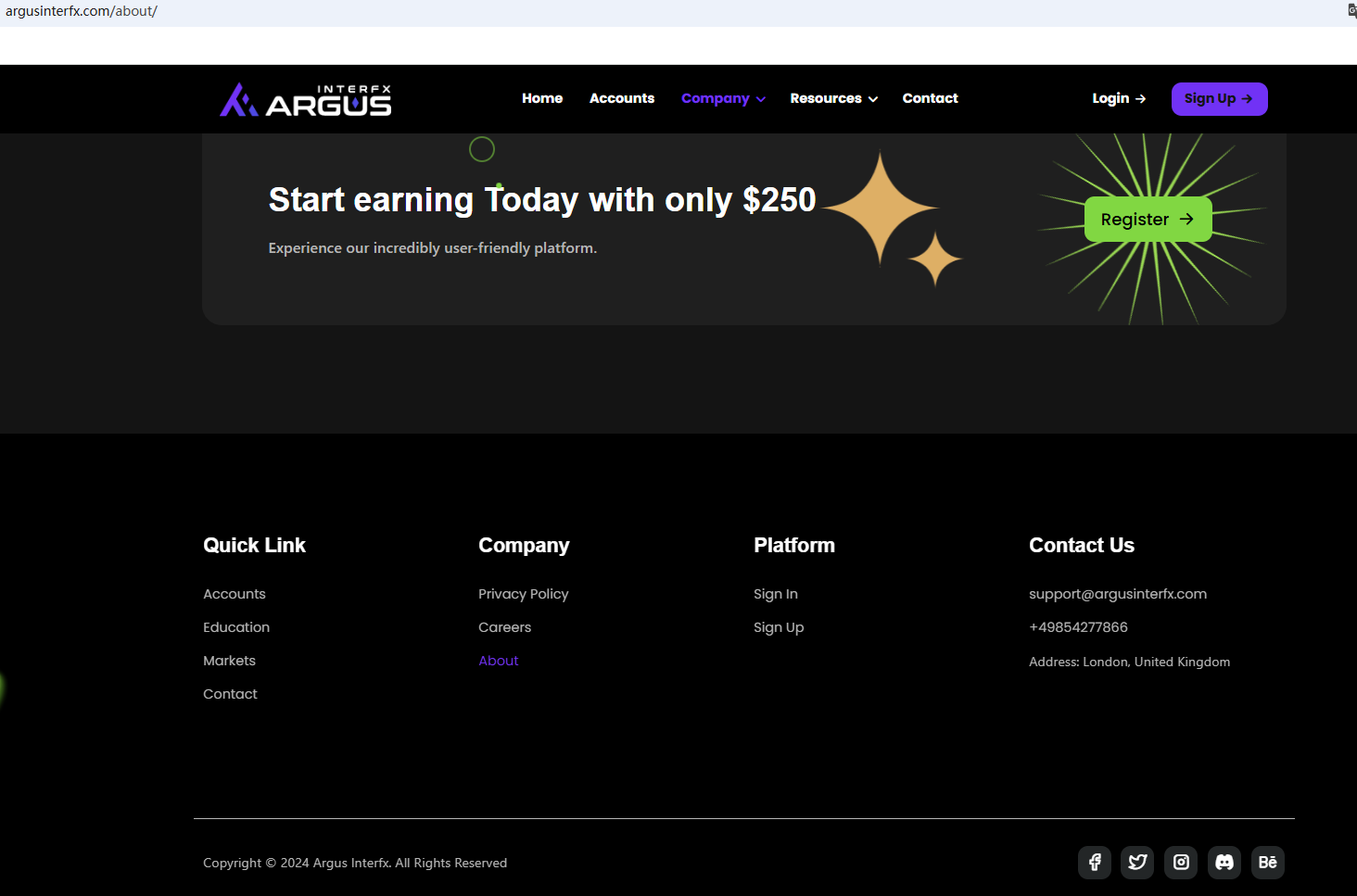 According to its website, it claims to have entered the forex industry in 2012, but our search revealed that its domain name was not created until 2025. Clearly, the information on its website is inconsistent with the facts. Its address is in the UK, but no matching information was found in the Financial Conduct Authority (FCA). Furthermore, the National Securities Market Commission (CNMV) issued a warning against Argus Interfx, believing this company might be providing financial services or products without proper authorization.