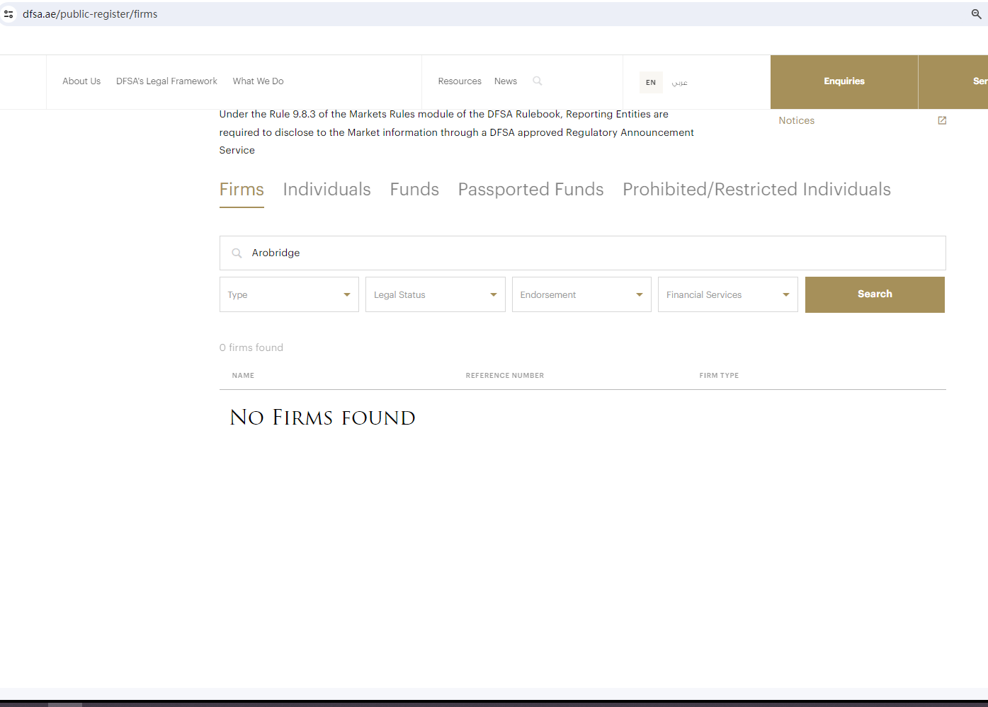 According to its website, it is located in the UAE. Upon investigation, no matching information was found in the Central Bank of the United Arab Emirates (CBUAE), the Dubai Financial Services Authority (DFSA), the Securities and Commodities Authority (SCA).