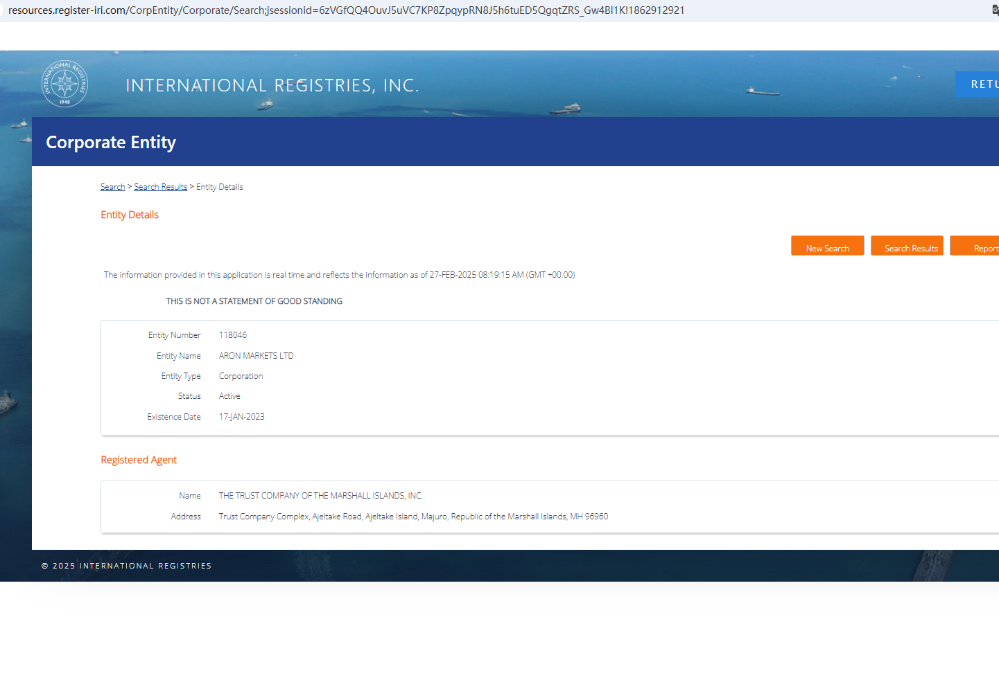 According to its website, it claims to be registered with the Marshall Islands Registry (IRI). Although we found relevant information in IRI, it is well known that IRI does not have the right to regulate foreign exchange. In addition, it claims that the actual office address is in Cyprus. After inquiry, no matching information was found in Cyprus Securities and Exchange Commission (CySEC).