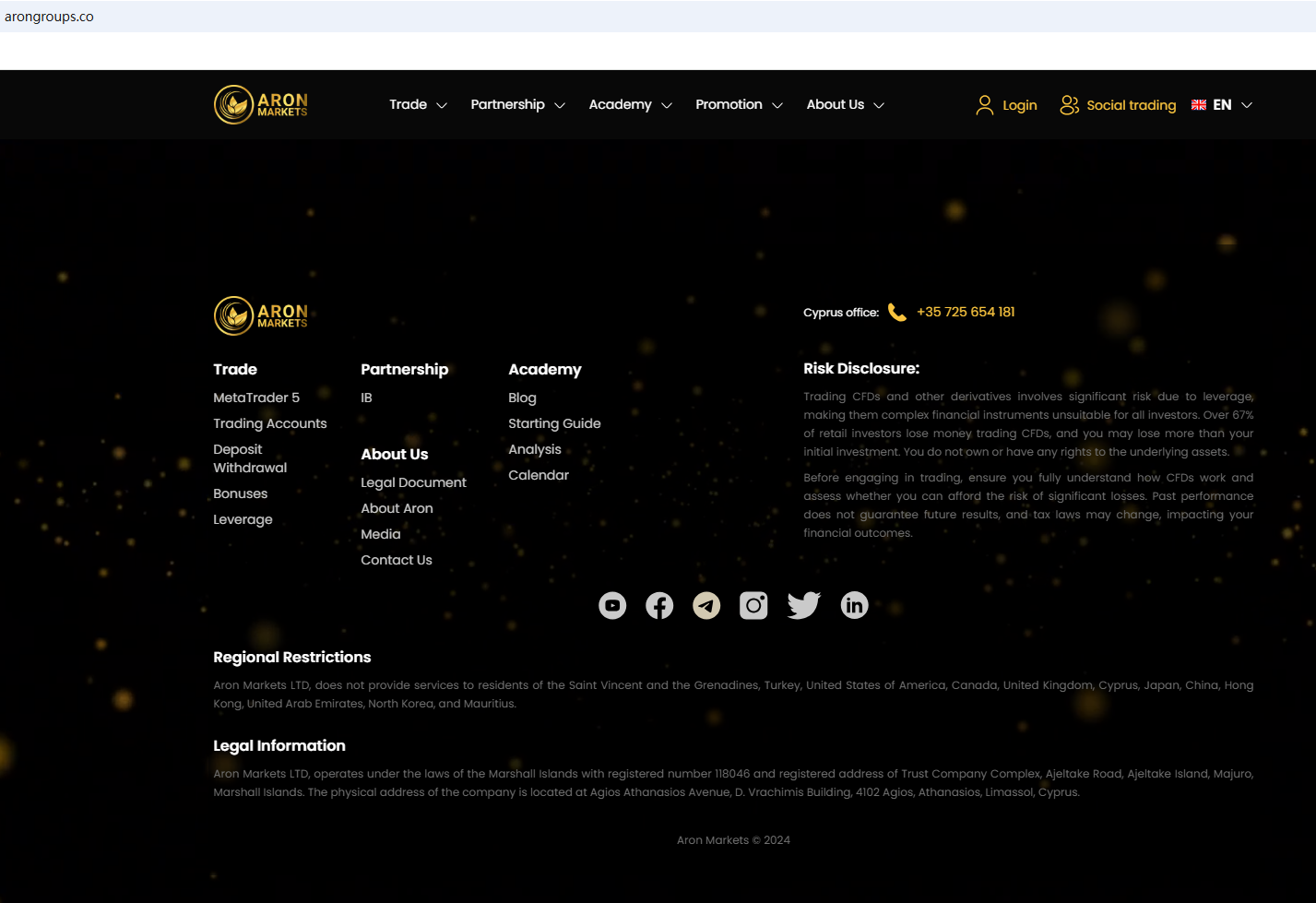 In essence, Aron Groups is not regulated by any governing body. Entrusting it with investors' funds is highly risky, as there are no legal protections in place to safeguard the funds. Aron Groups appears to be a scam.