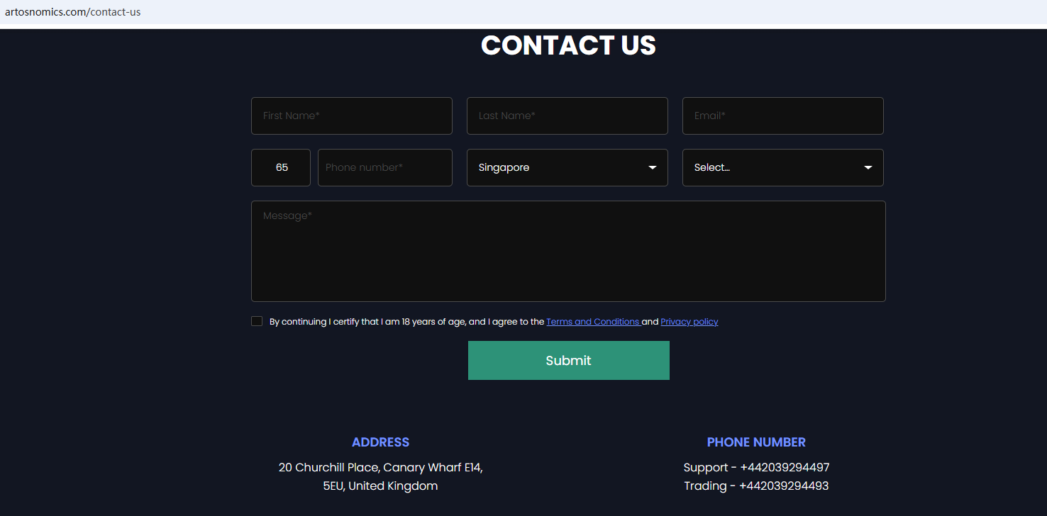 BrokersView found that the domain "https://www.artosnomics.com;https://www.artosnomics.co"are currently inaccessible. This is widely regarded as a significant red flag, as the suspension of a broker's website often points to underlying regulatory or operational issues.